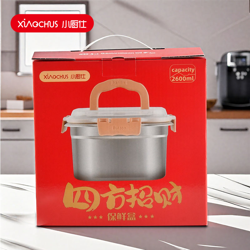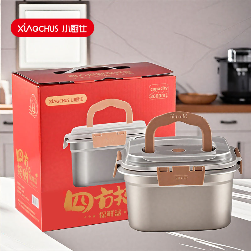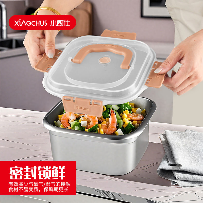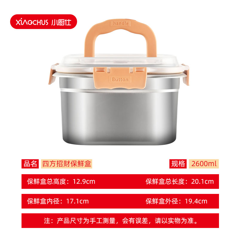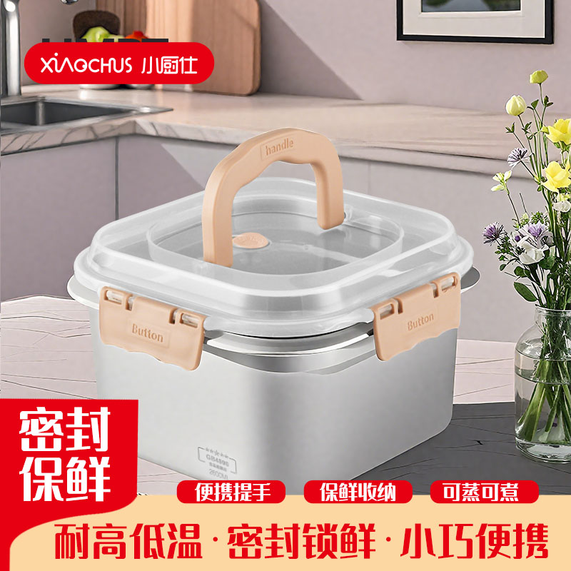 小厨仕(xiaochushi) 四方招财保鲜盒 xcs-009 2600ml 银色(单位:个)