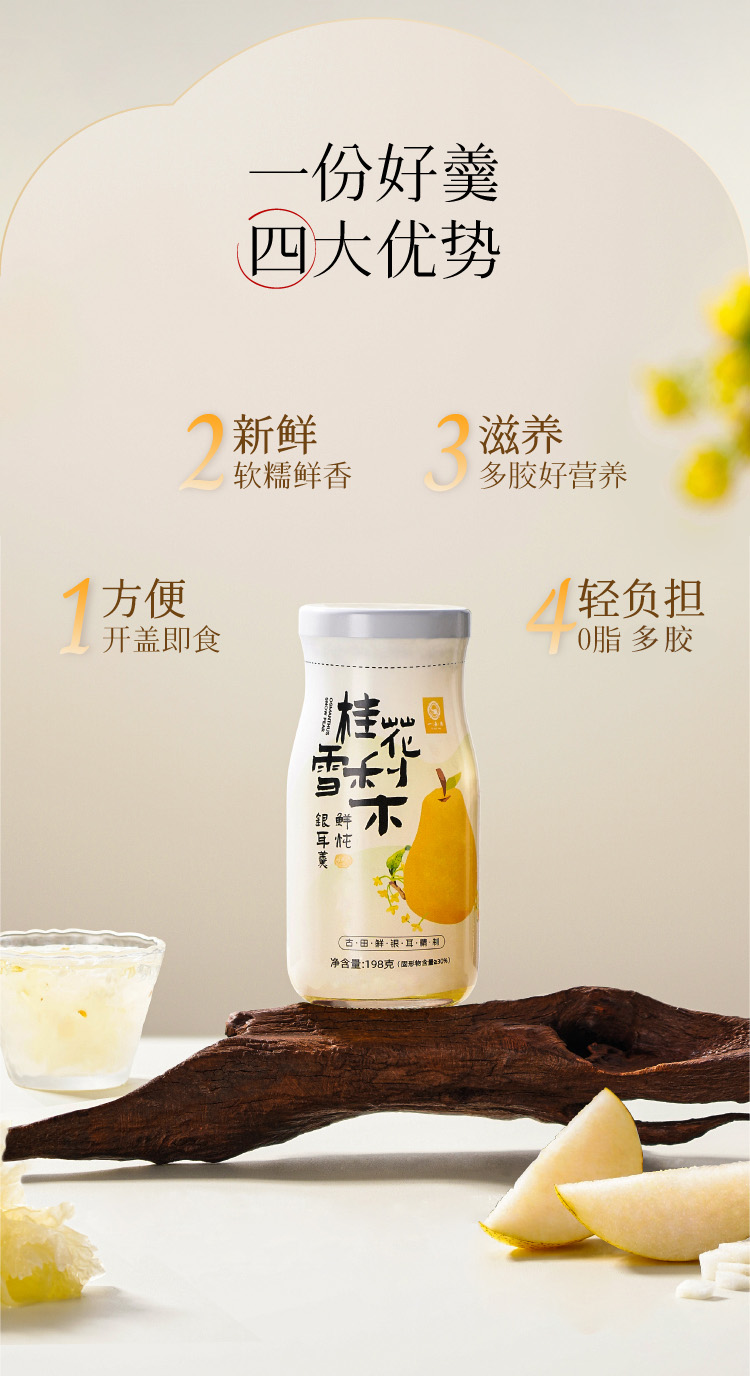 一朵燕(YIDUOYAN) 鲜炖银耳羹(桂花雪梨味) 礼盒装 1188克(198ml*6瓶) 香槟黄(单位:盒)