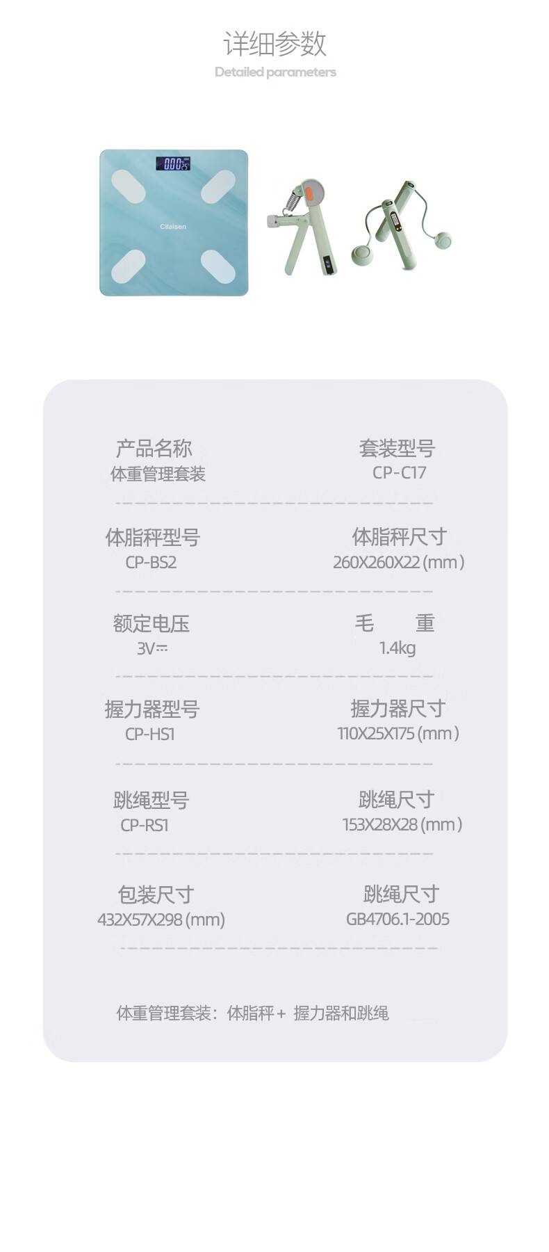 西莱森(cilaisen) 体重管理套装 CP-C17 体脂秤+握力器+跳绳 混色(单位:套)