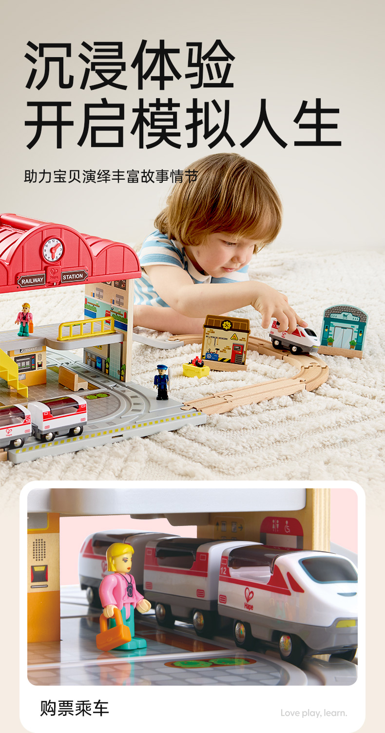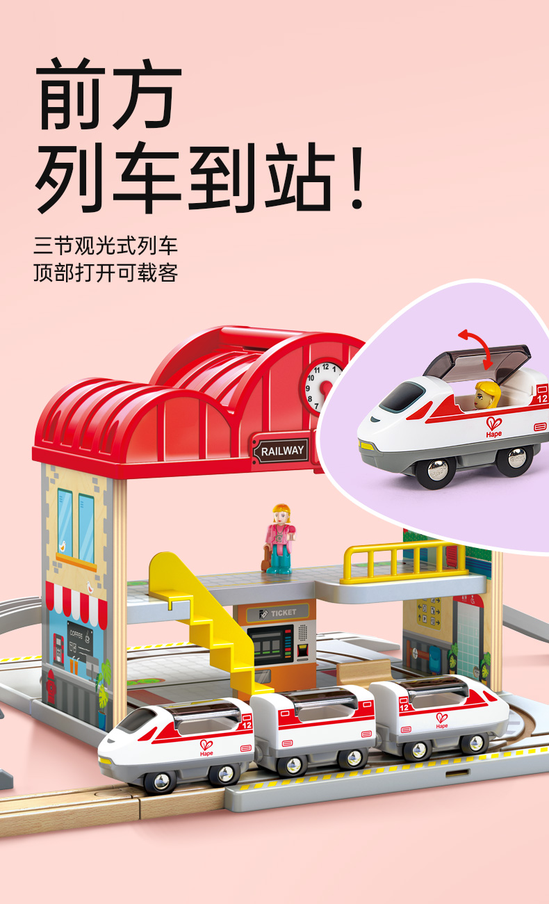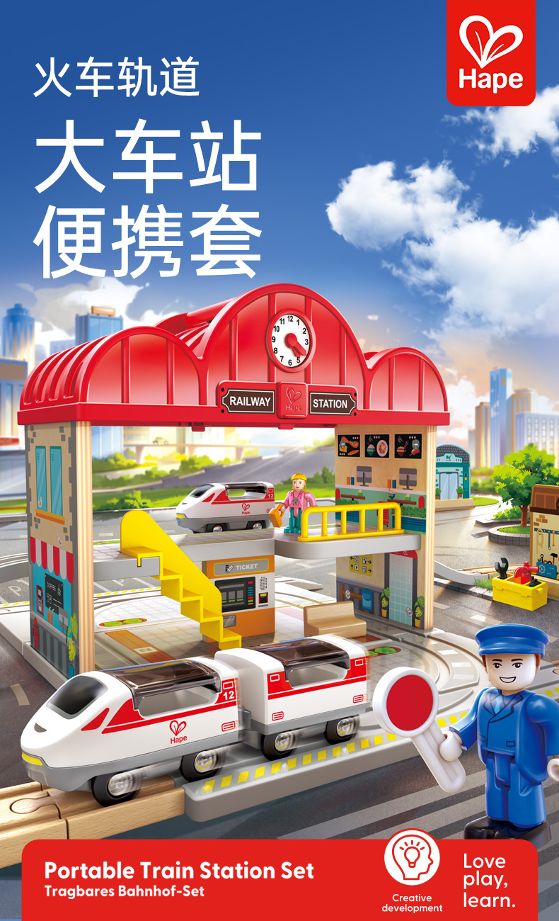 Hape 火车轨道大车站便携套(建构玩具) E3877 2.28kg 混色(单位:套)