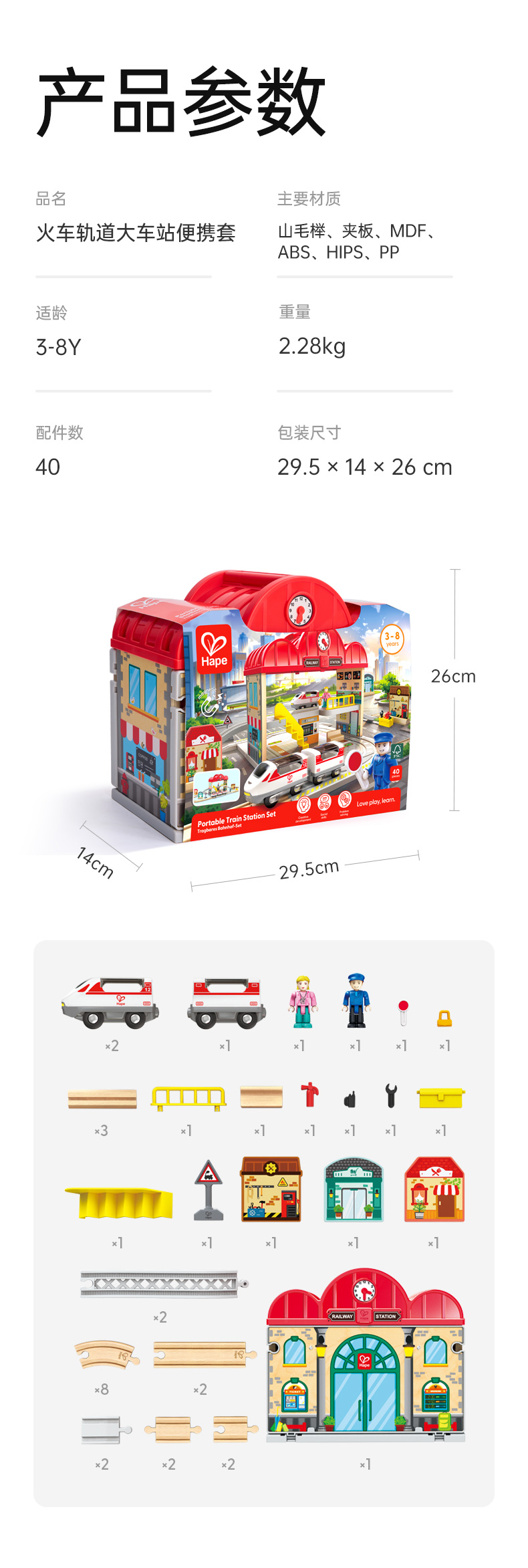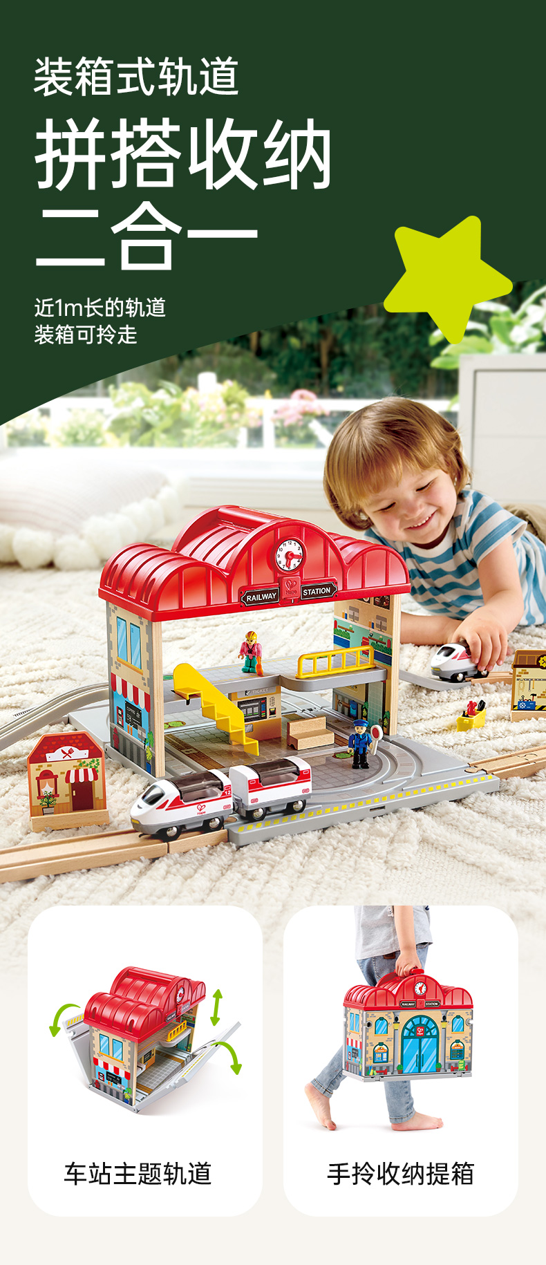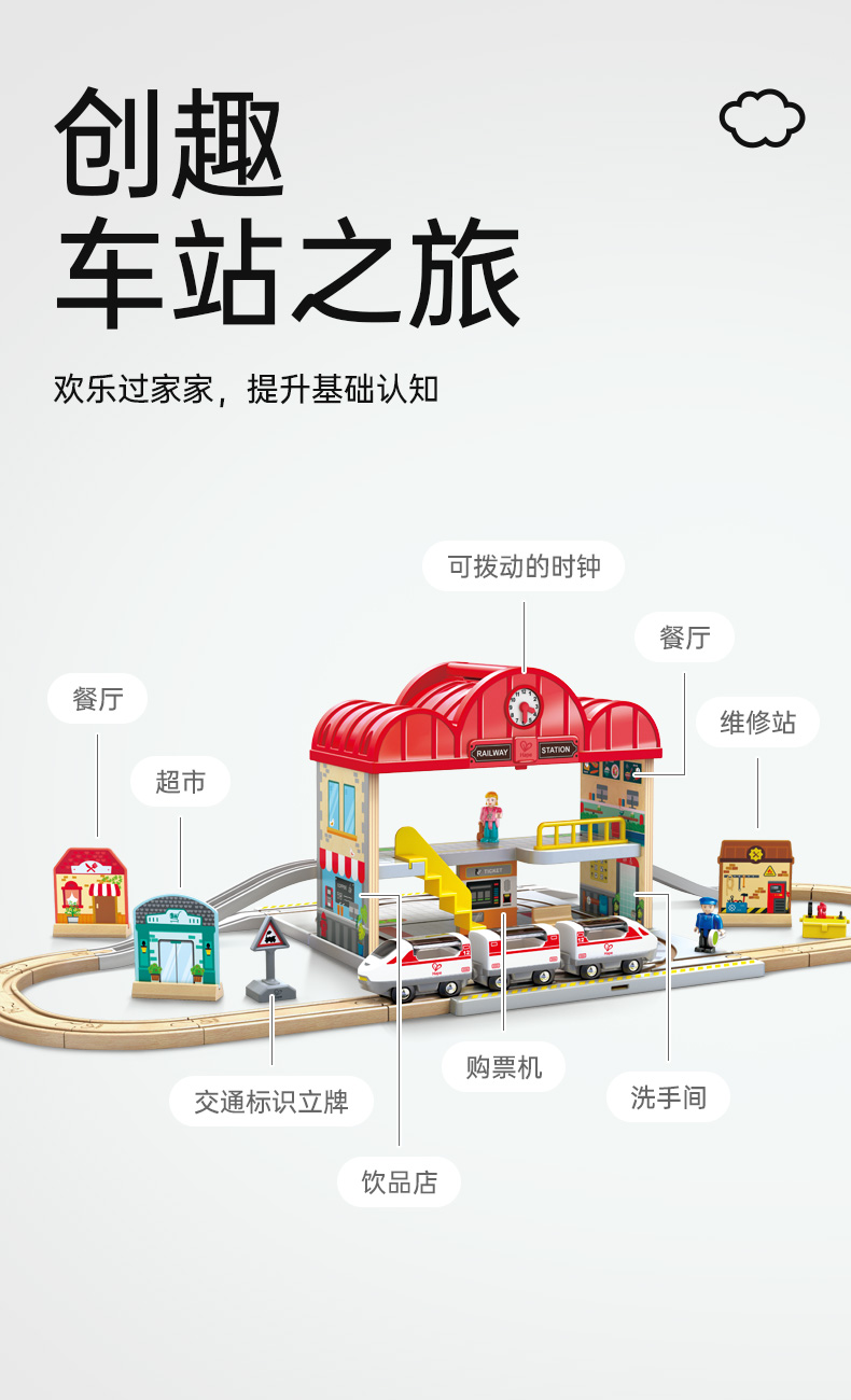 Hape 火车轨道大车站便携套(建构玩具) E3877 2.28kg 混色(单位:套)
