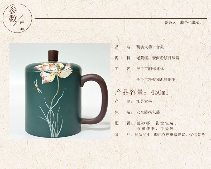璞实茶器 茶杯 合美 450ml 紫砂(单位:套)