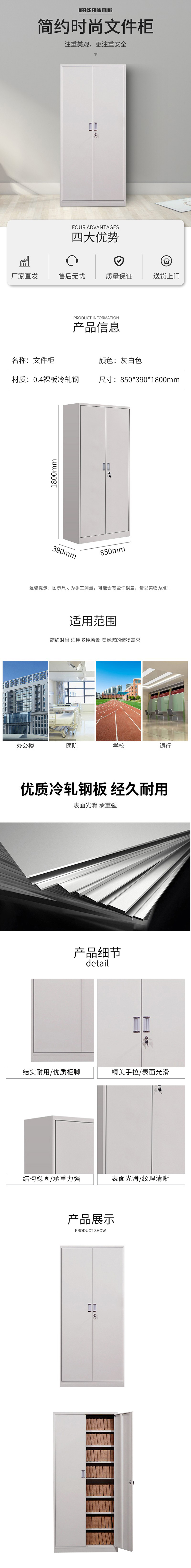 企诺 办公室铁皮文件柜七层凭证柜 QNGa14A1-04PA 850*390*1800mm|0.35mm 灰白色(单位:个)