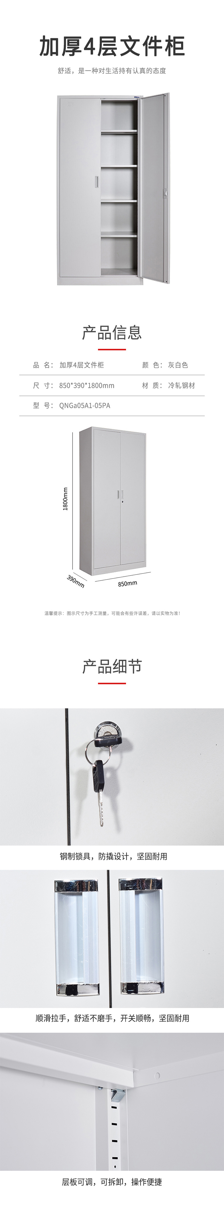 企诺 凭证资料柜文件柜四层凭证柜 QNGa05A1-05PA 0.6mm-850*390*1800mm 灰白色(单位:个)