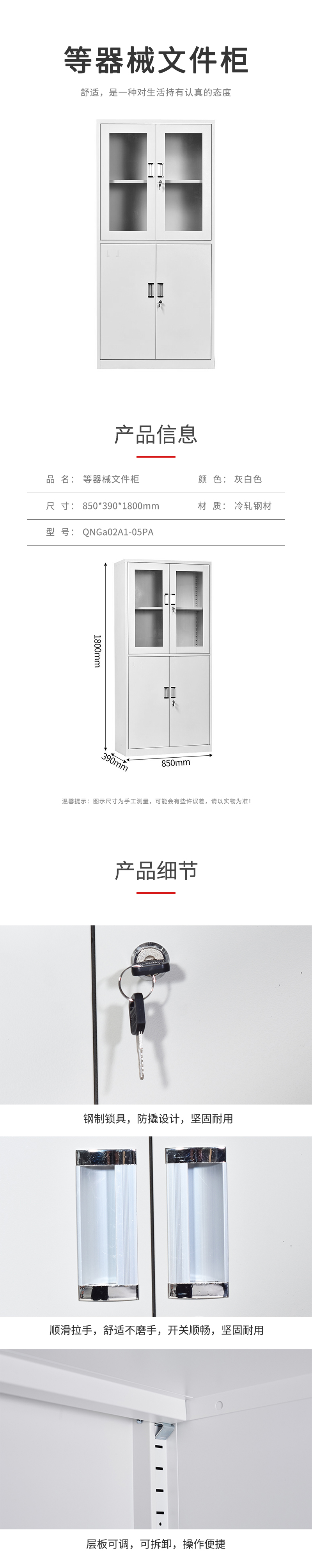企诺 凭证资料柜文件柜等器械柜 QNGa02A1-05PA 0.6mm-850*390*1800mm 灰白色(单位:个)