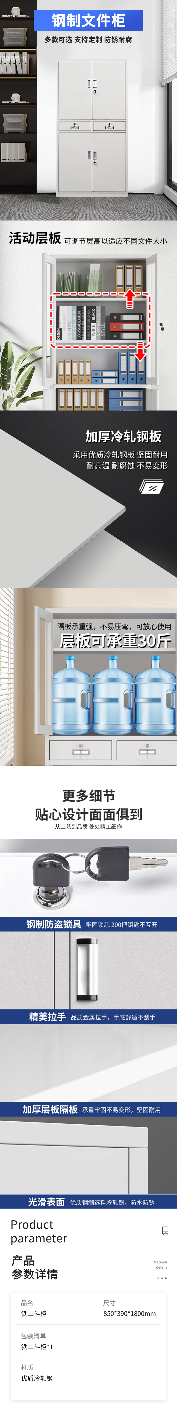 企诺 文件柜资料柜铁皮档案柜铁二斗柜 QNGa15A1-05PA 850*390*1800mm|0.6mm 灰白色(单位:个)