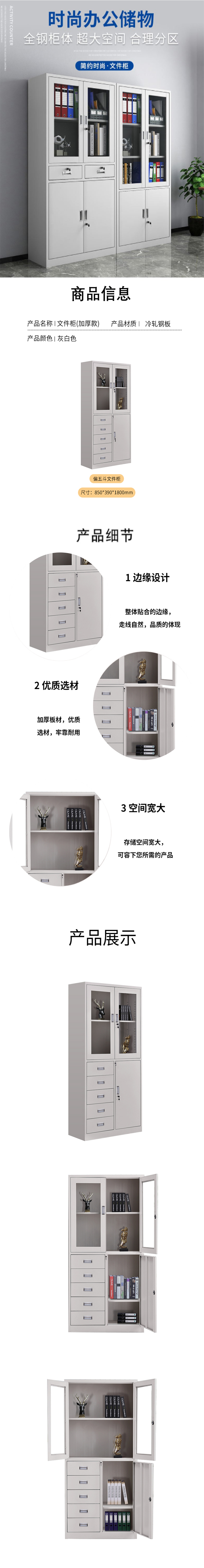 企诺 文件柜资料柜铁皮档案柜偏五斗柜 QNGa12A1-05PA 850*390*1800mm|0.6mm 灰白色(单位:个)