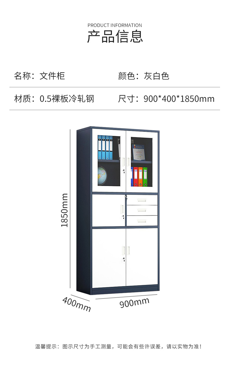 企诺 偏三斗文件柜加厚套色 QNGa11A1-05GW 900*400*1850mm|0.5mm 灰白色(单位:个)