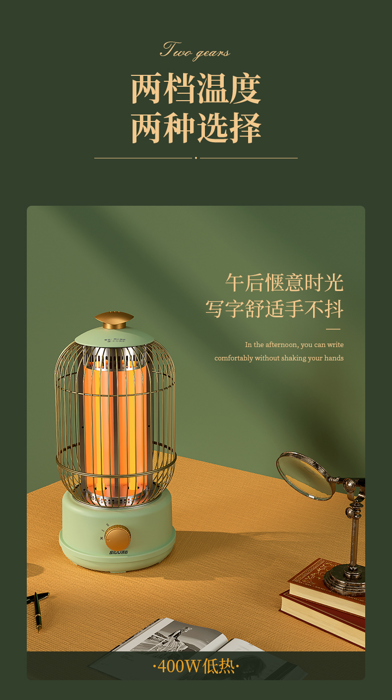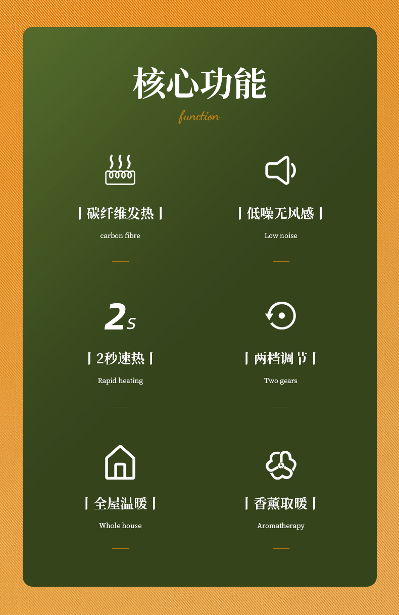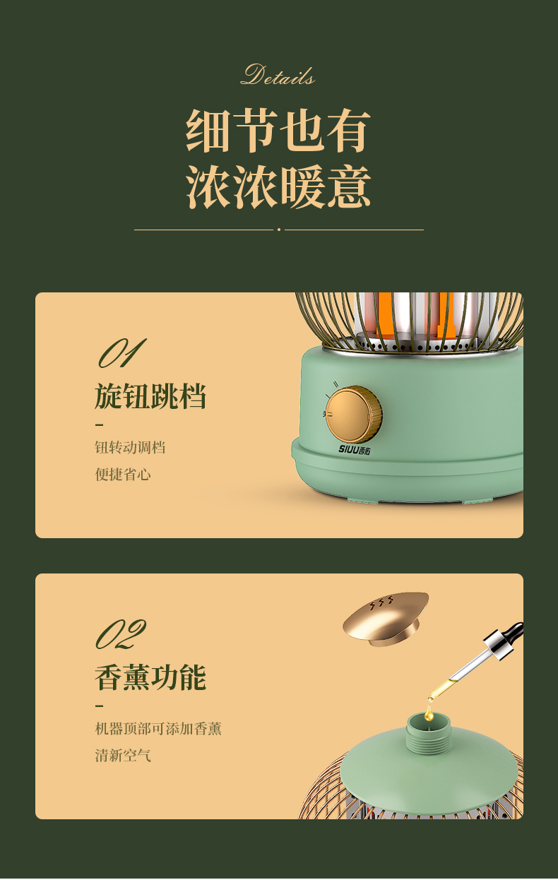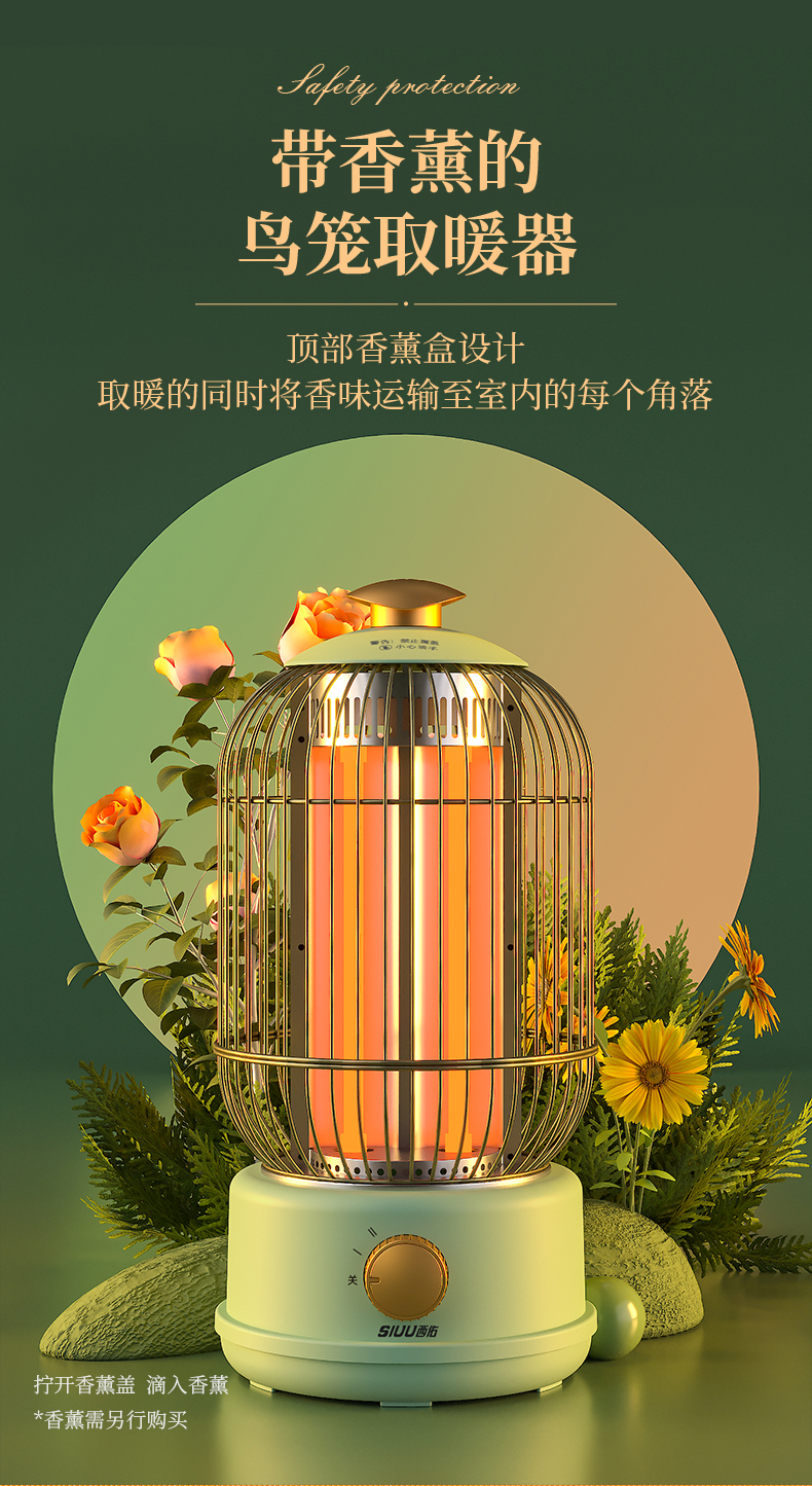 西佑 碳纤维远红外带香薰多档调节取暖器 H6 800W 莫兰迪绿(单位:台)