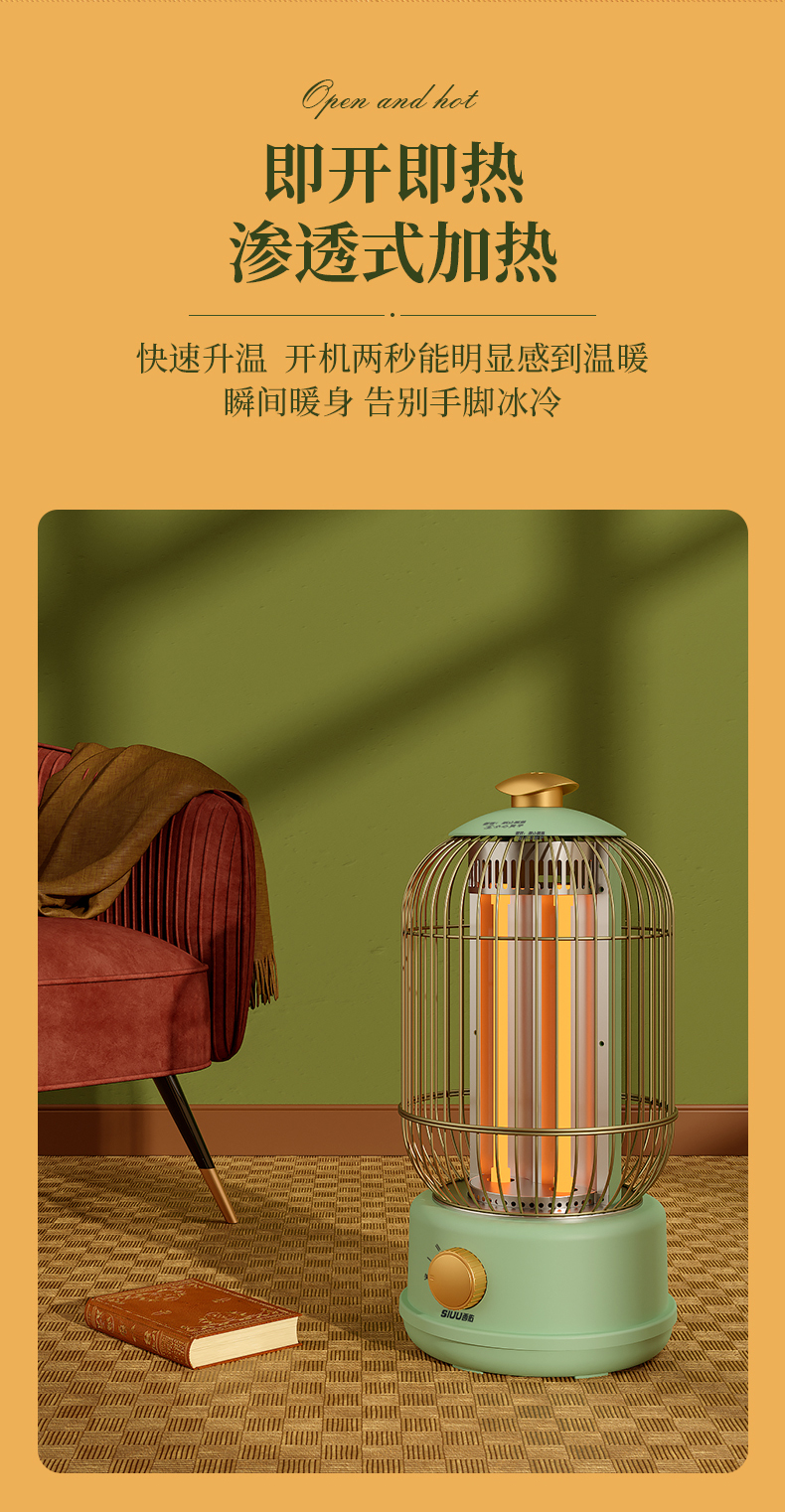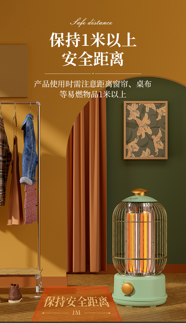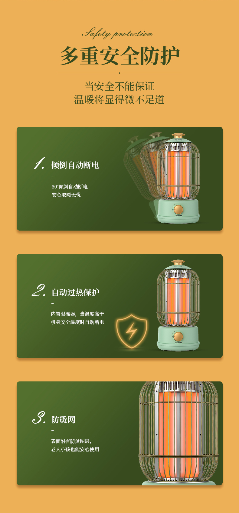 西佑 碳纤维远红外带香薰多档调节取暖器 H6 800W 莫兰迪绿(单位:台)