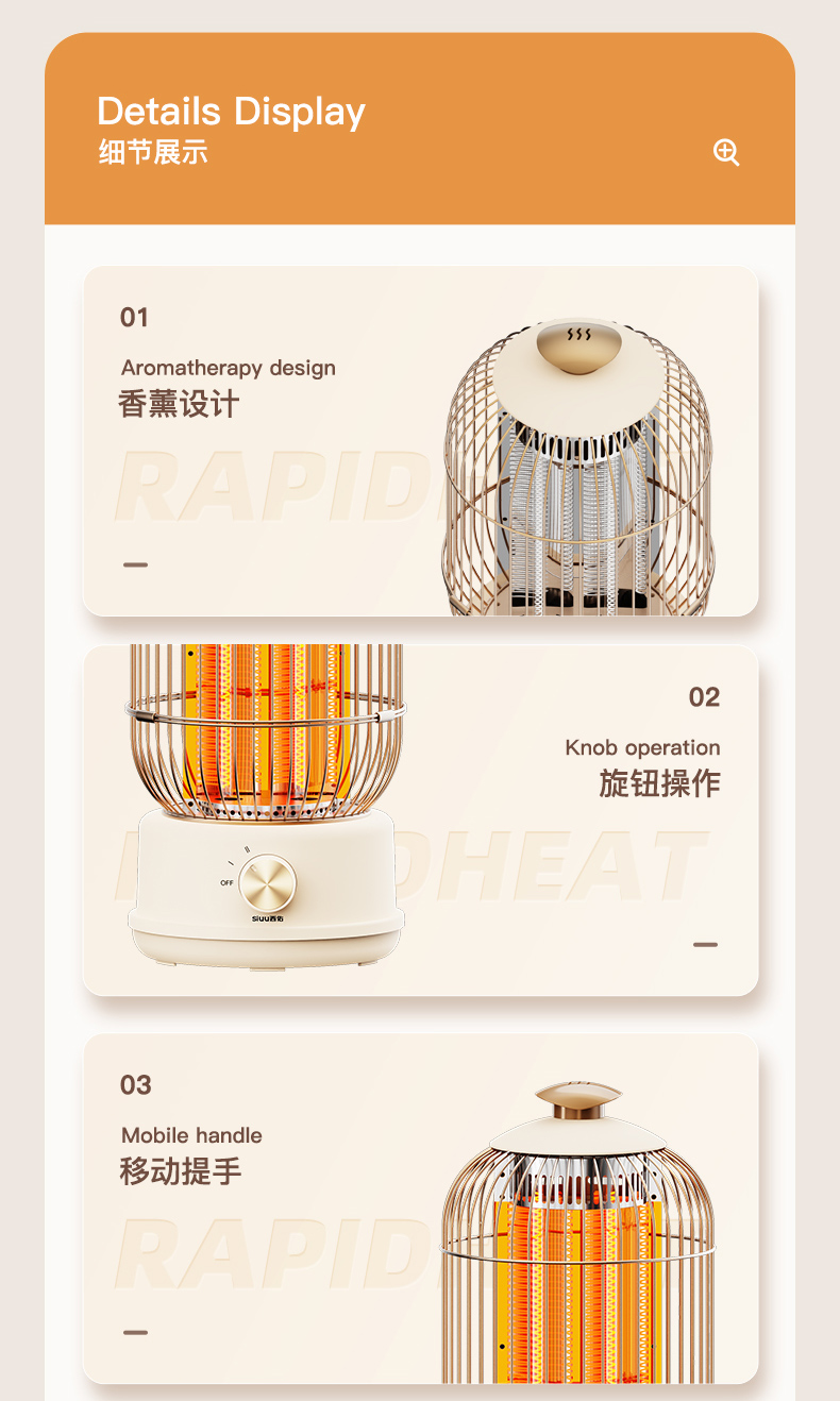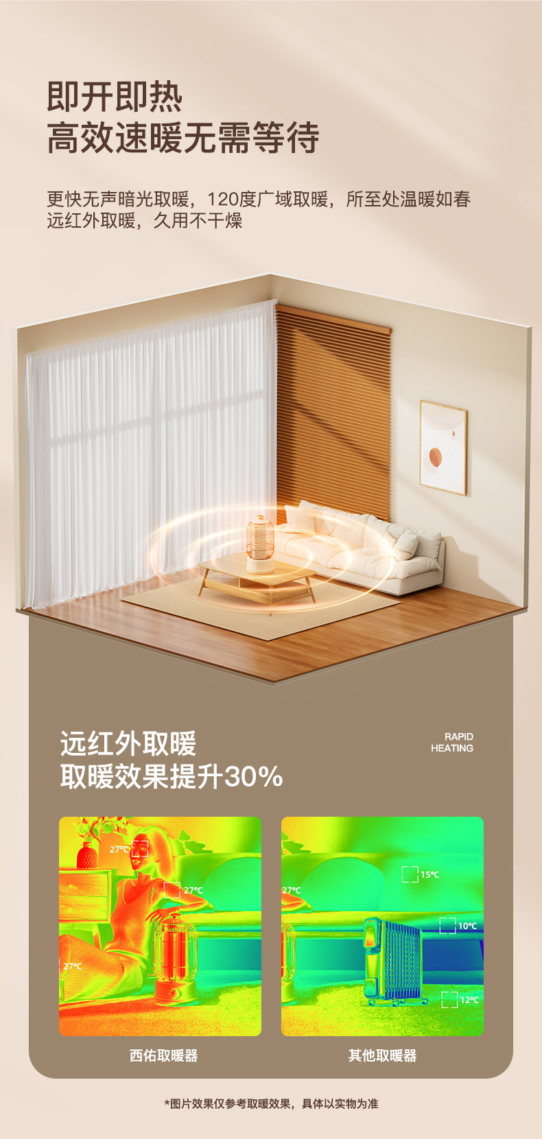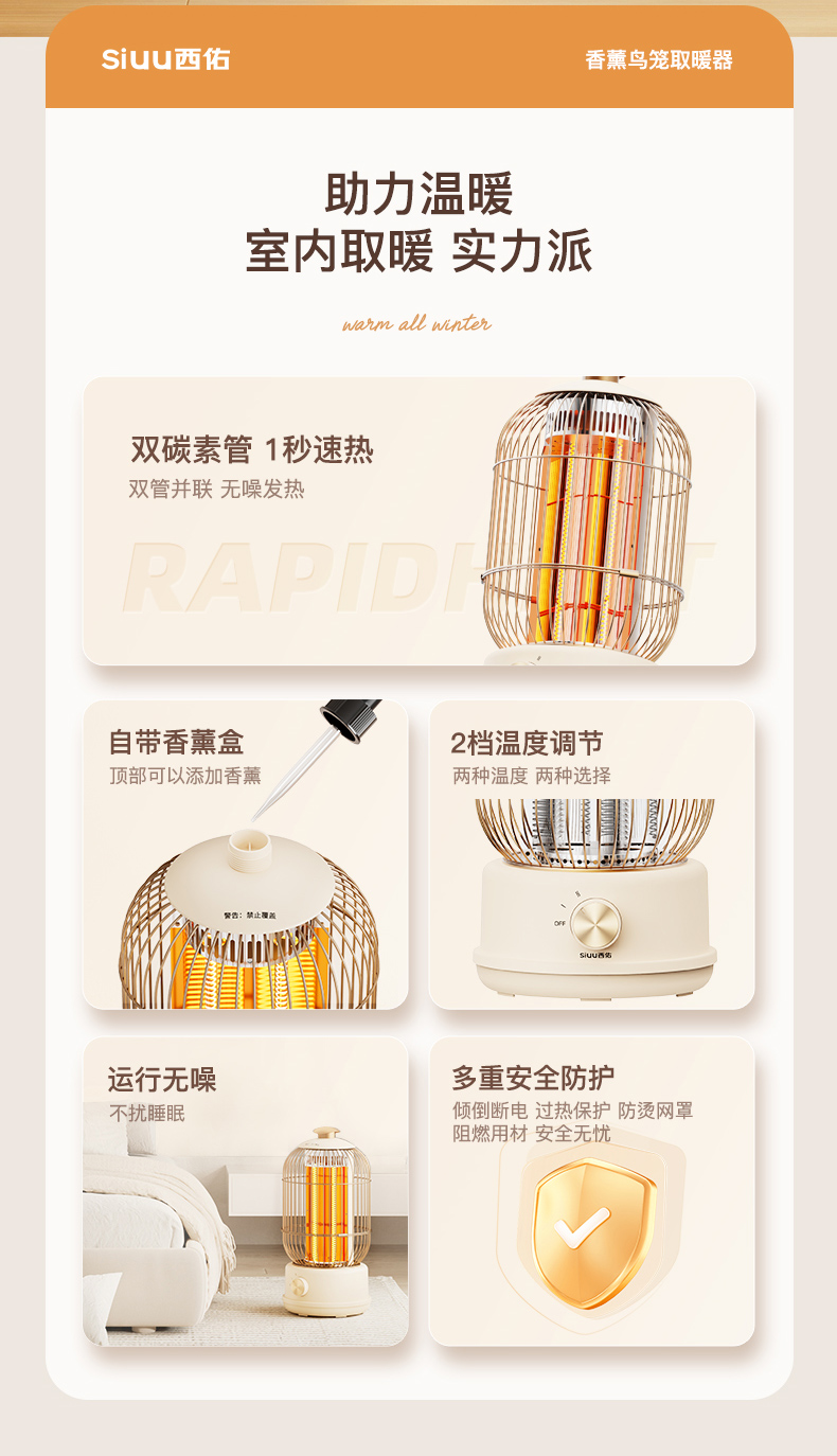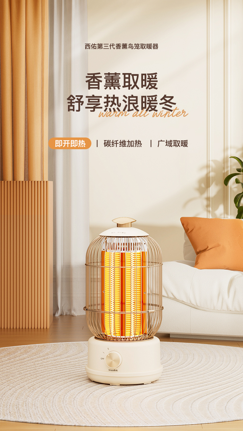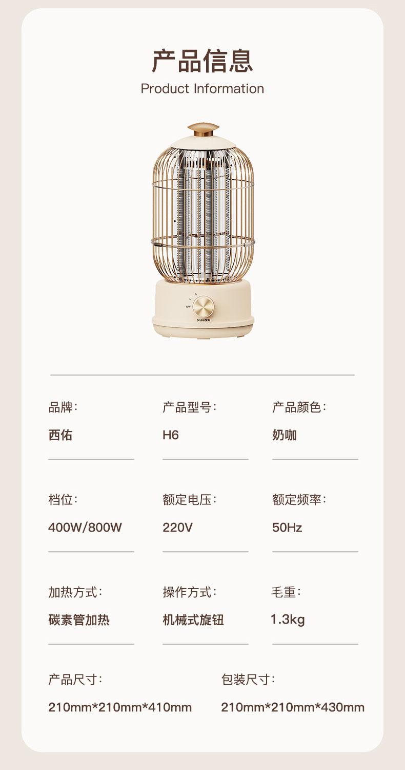 西佑 碳纤维远红外带香薰多档调节取暖器 H6 800W 奶咖金(单位:台)