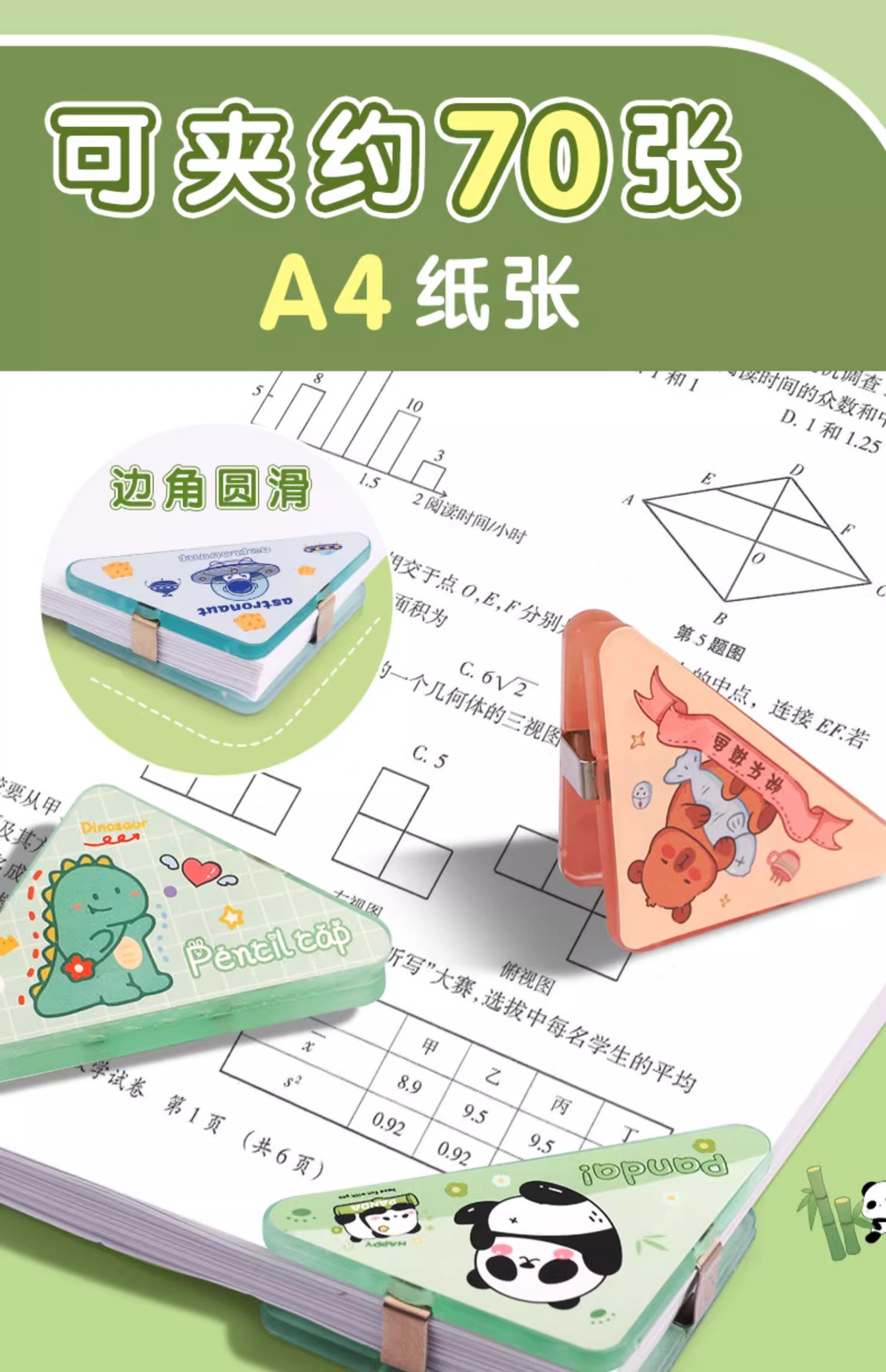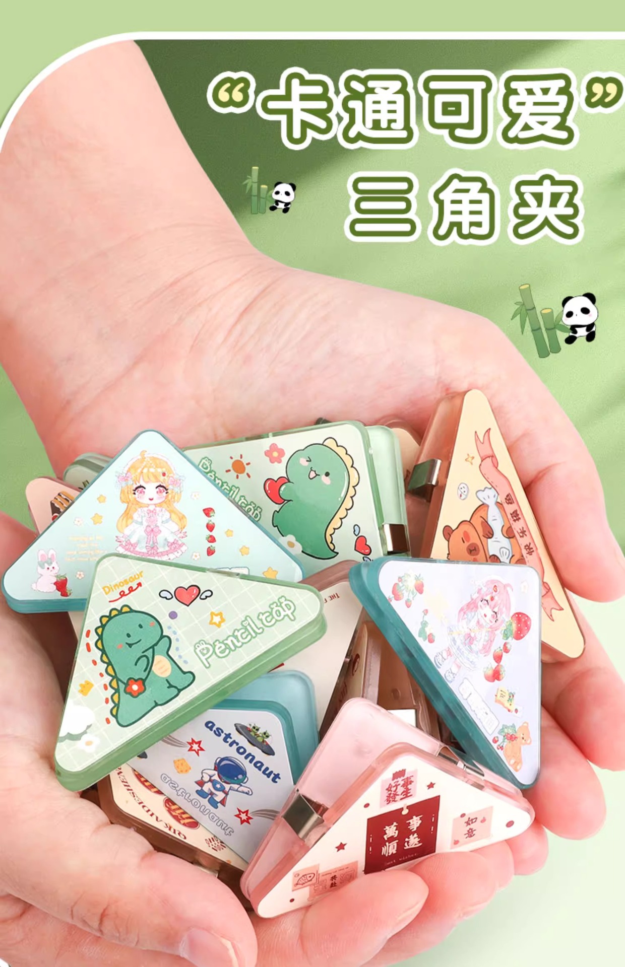 童益星 轻便三角夹 萌趣恐龙 4个装 绿色(单位:组)