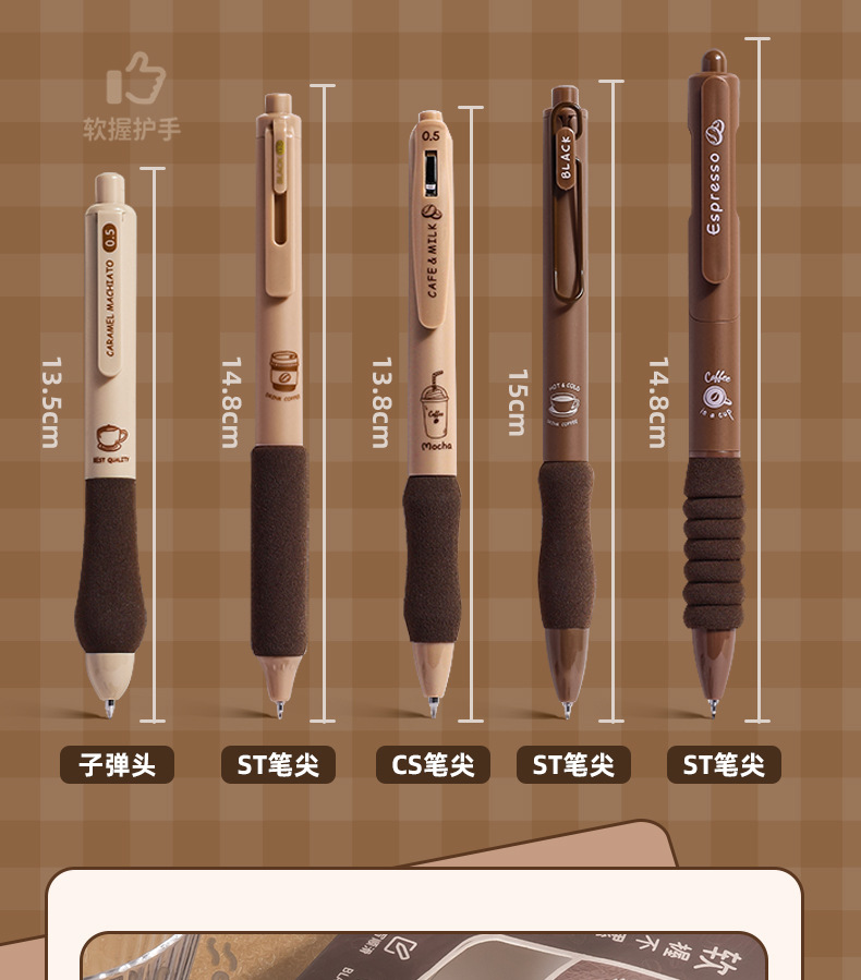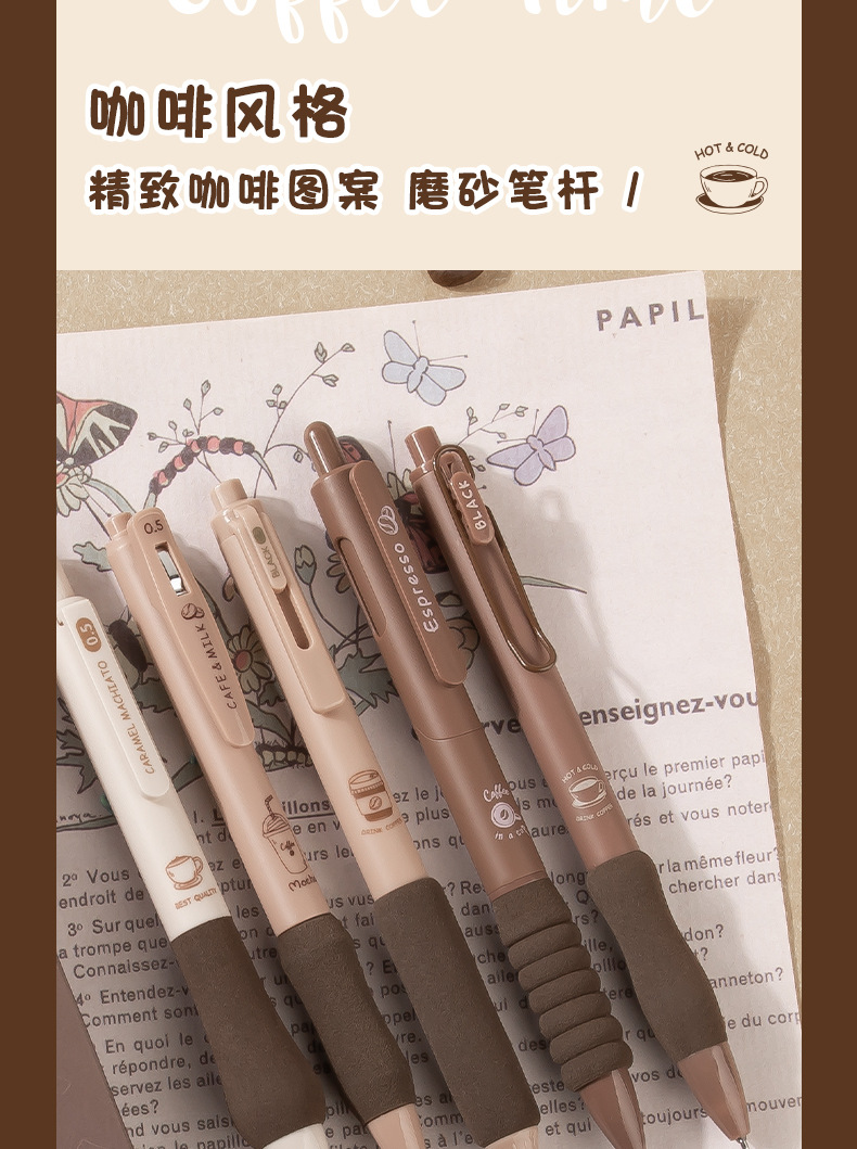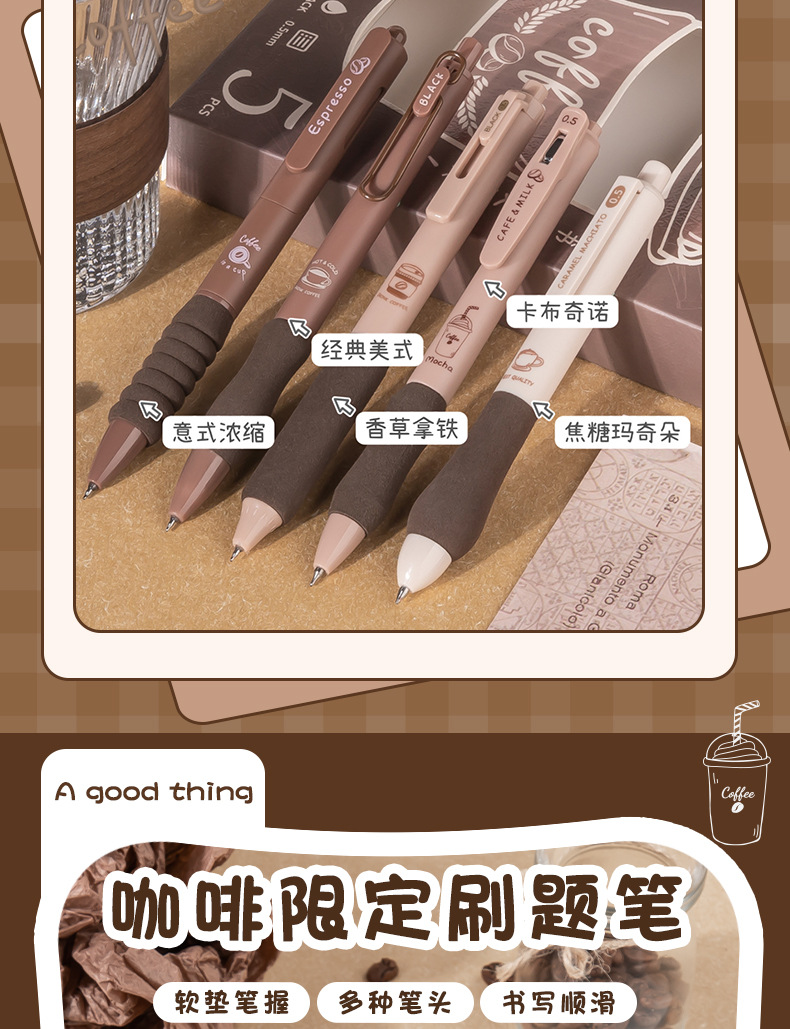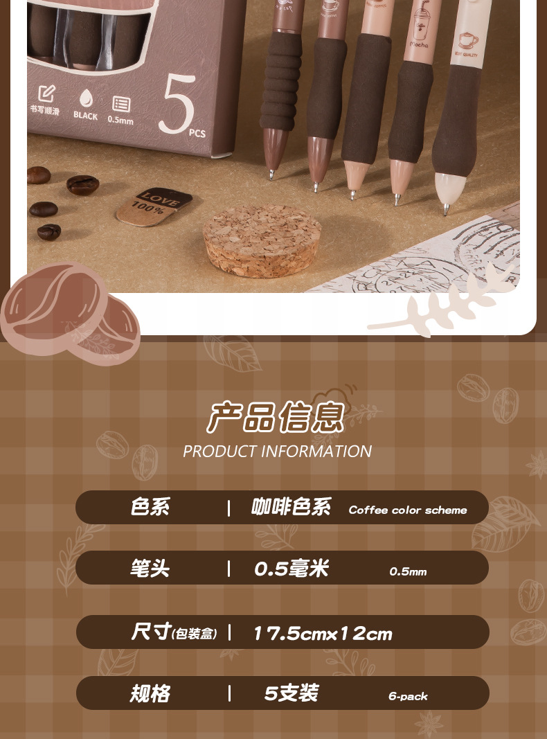 童益星 中性笔 咖啡时光 1盒5支装 咖啡色(单位:盒)