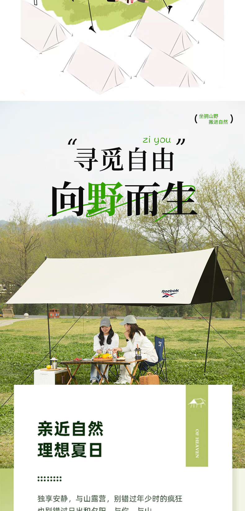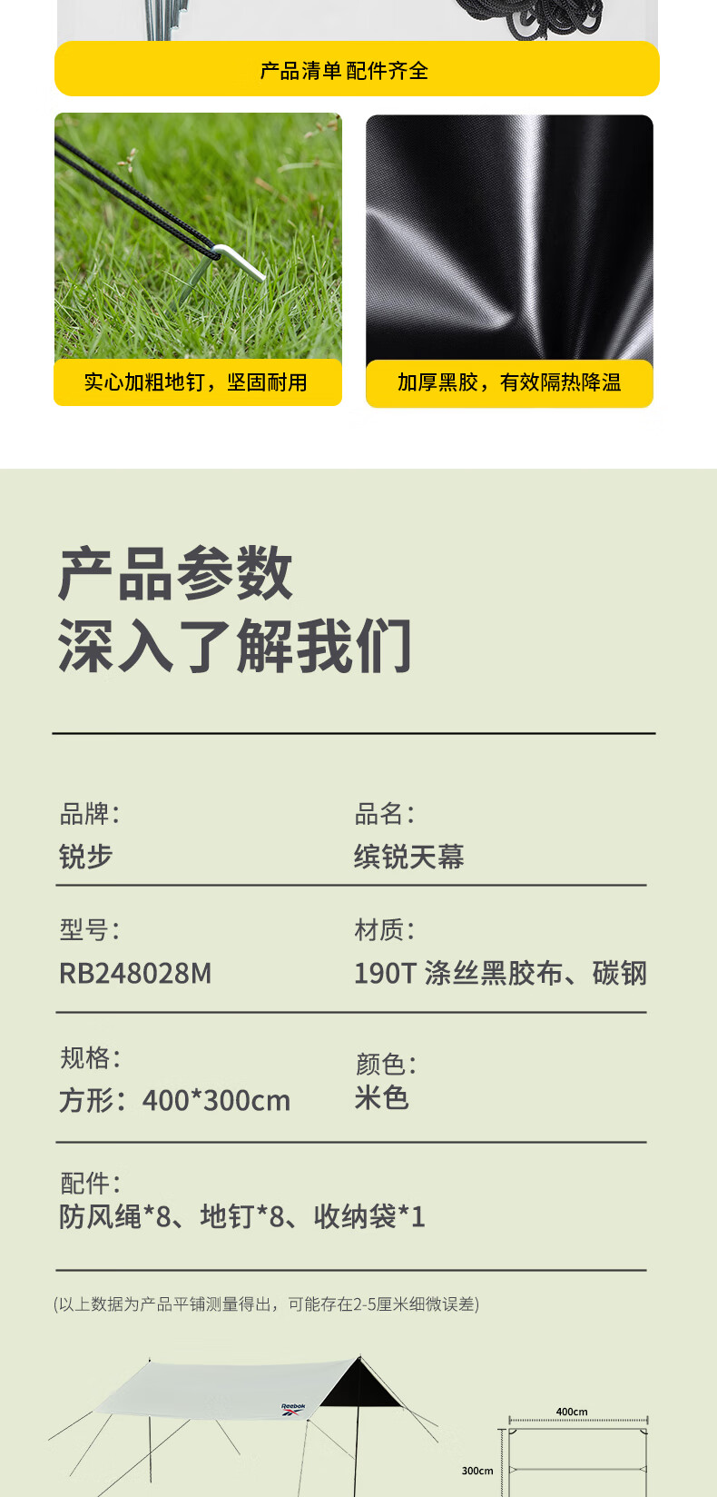 锐步(Reebok) 缤锐天幕黑胶帐篷 RB248028M 展开400*300cm 象牙色(单位:件)