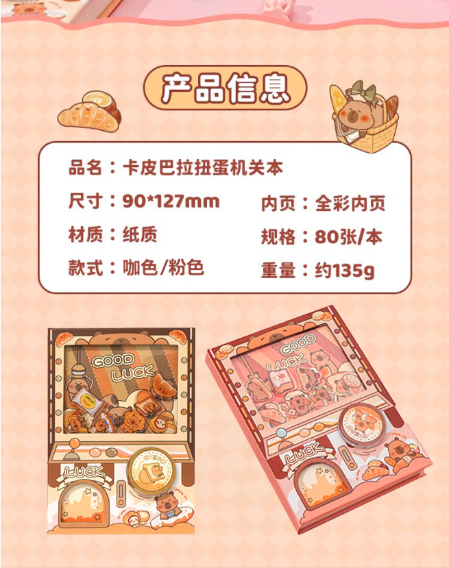 予颜 可爱卡通手帐机关扭蛋本1本 卡皮巴拉 135g 混色(单位:本)
