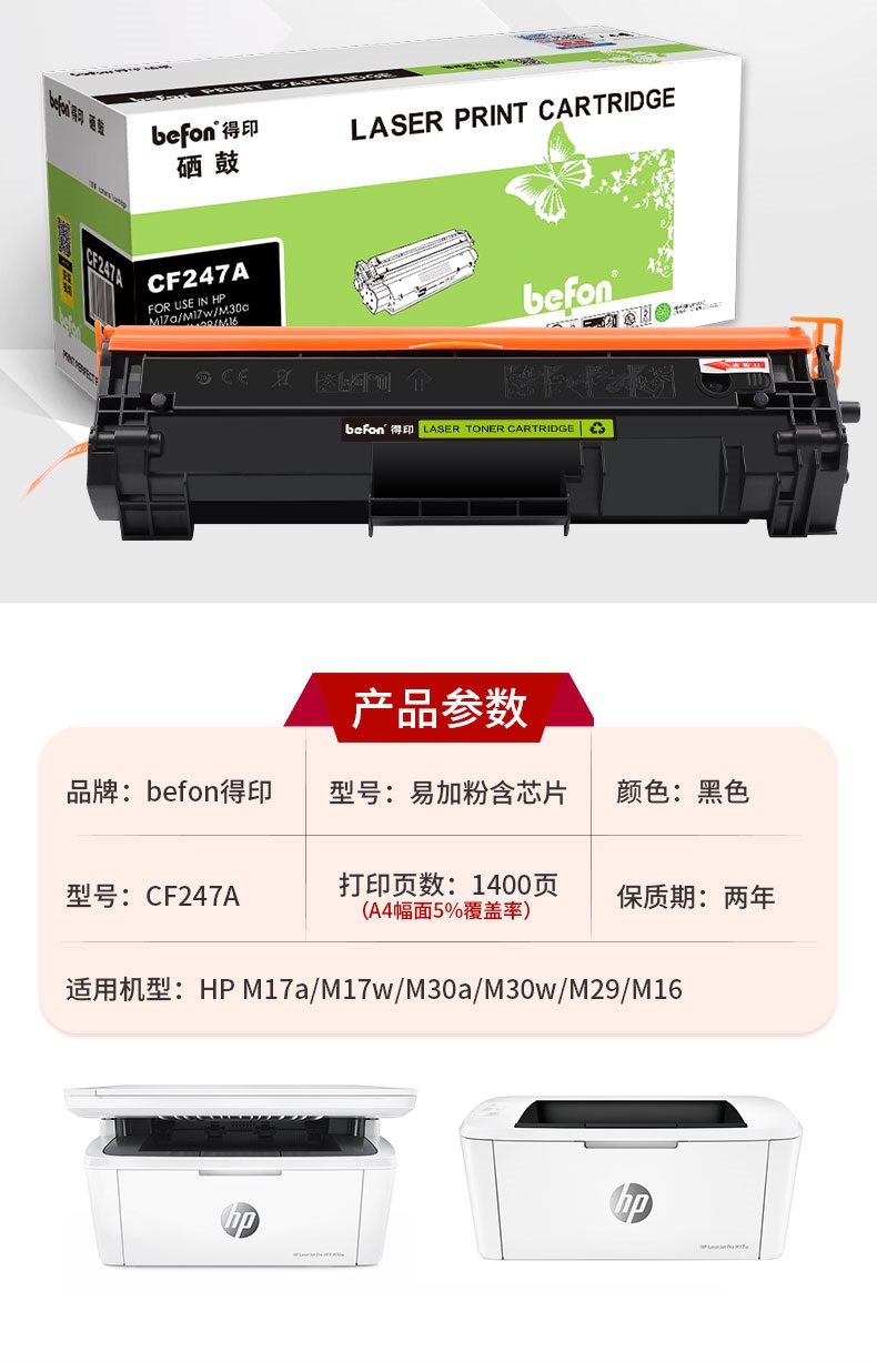 得印CF247A含芯片易加粉硒鼓适用HP M17a M17w M30a M30w 打印机墨粉盒 支 黑色