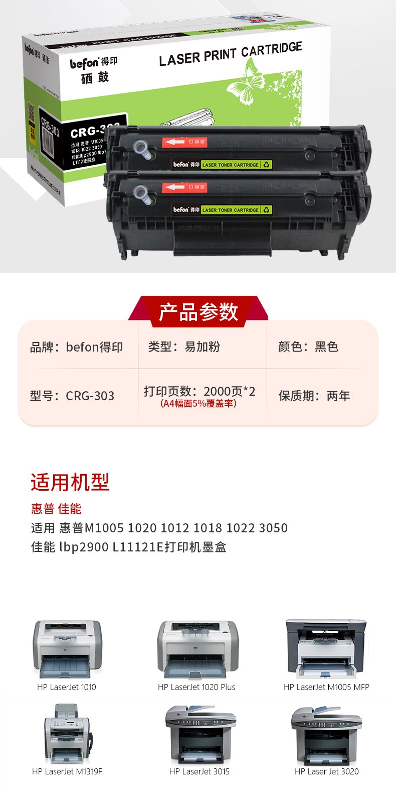 得印 CRG303硒鼓2支装 适用惠普M1005 1020 1012 1018 单位:套 黑色