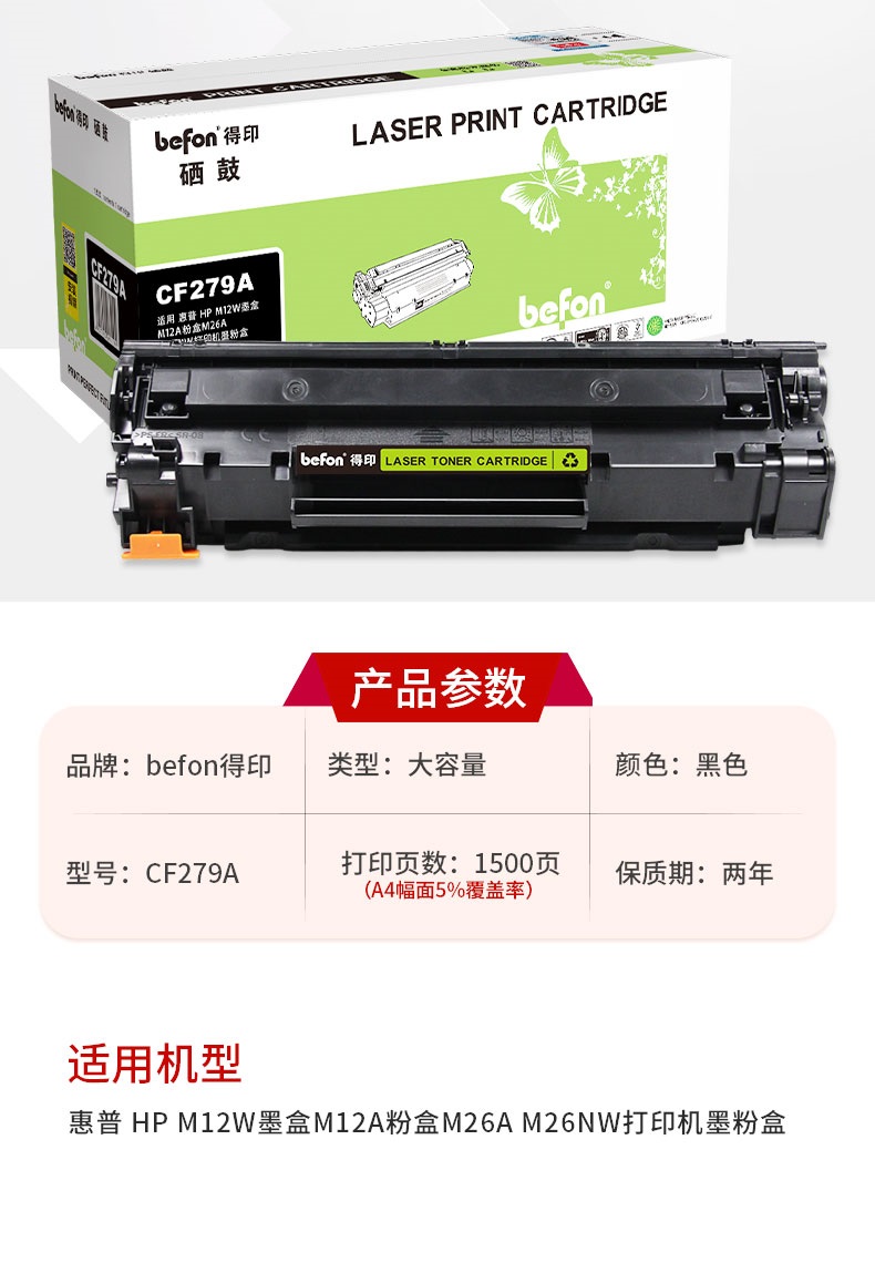得印 CF279A黑色硒鼓 惠普HP M12W M12A M26A M26NW 单位:支 黑色