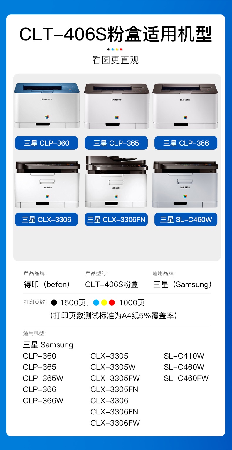 得印 CLT-406S粉盒适用三星CLP-360/365/366 CLX-3306 单位:支 黄色
