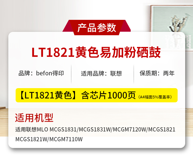 得印 LT1821粉盒 适用联想CM7120W CM7110 CS1821 单位:支 黄色