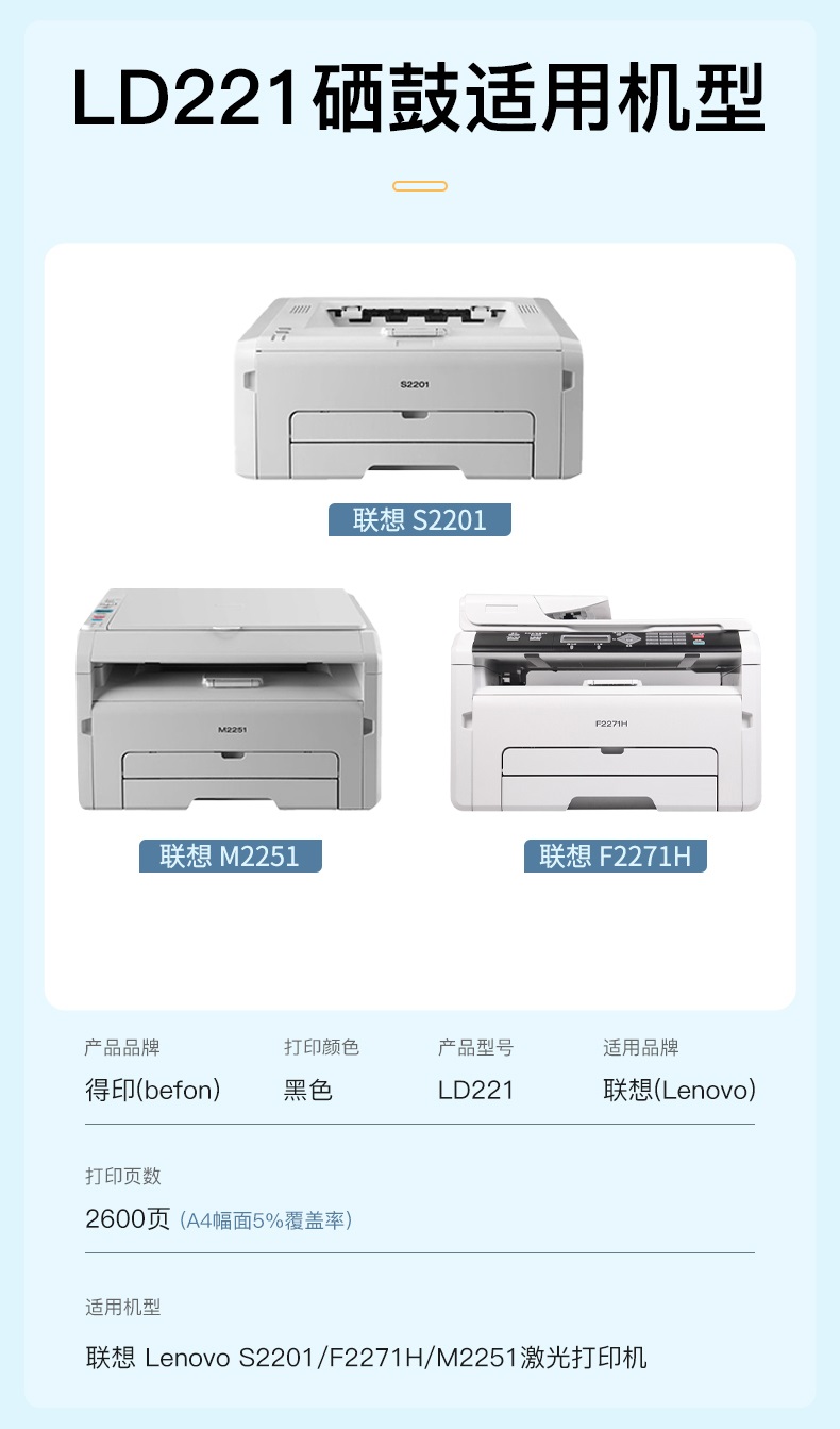 得印LD221硒鼓 适用于适用联想S2201/M2251/F2271H单位:支 黑色