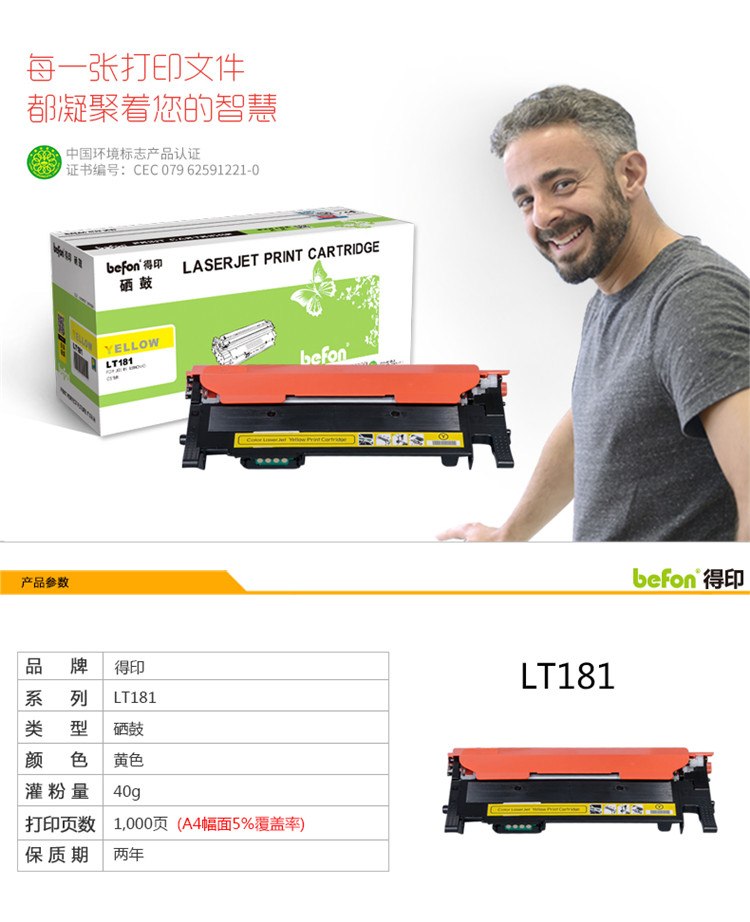 得印 LT181粉盒 适用联想Lenovo CS1811 单位:支 黄色
