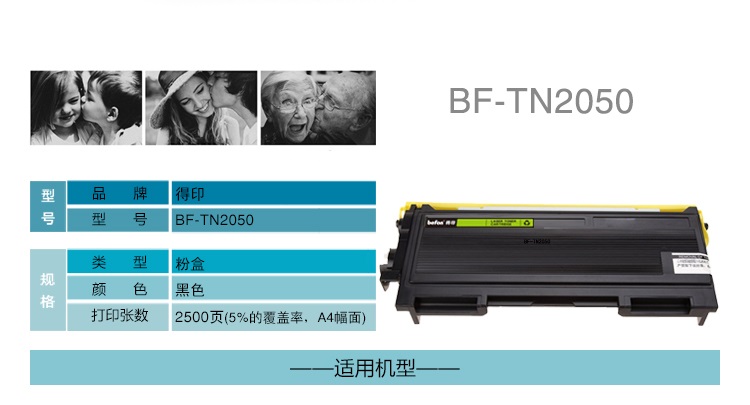 得印 BF-TN2050粉盒 适用兄弟MFC7420 7020 2820 2920 单位:支 黑色