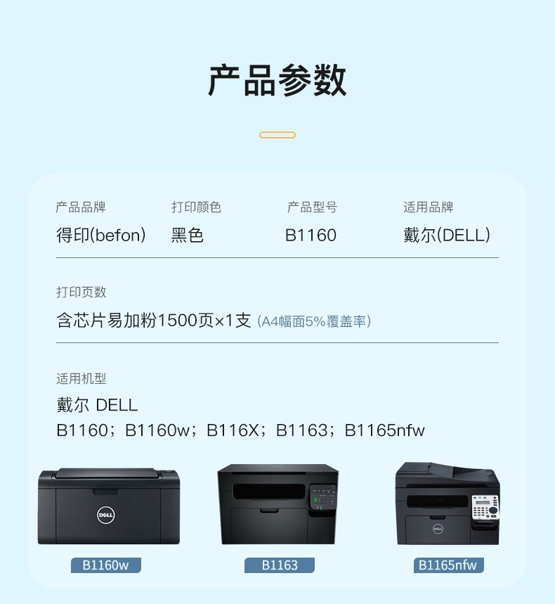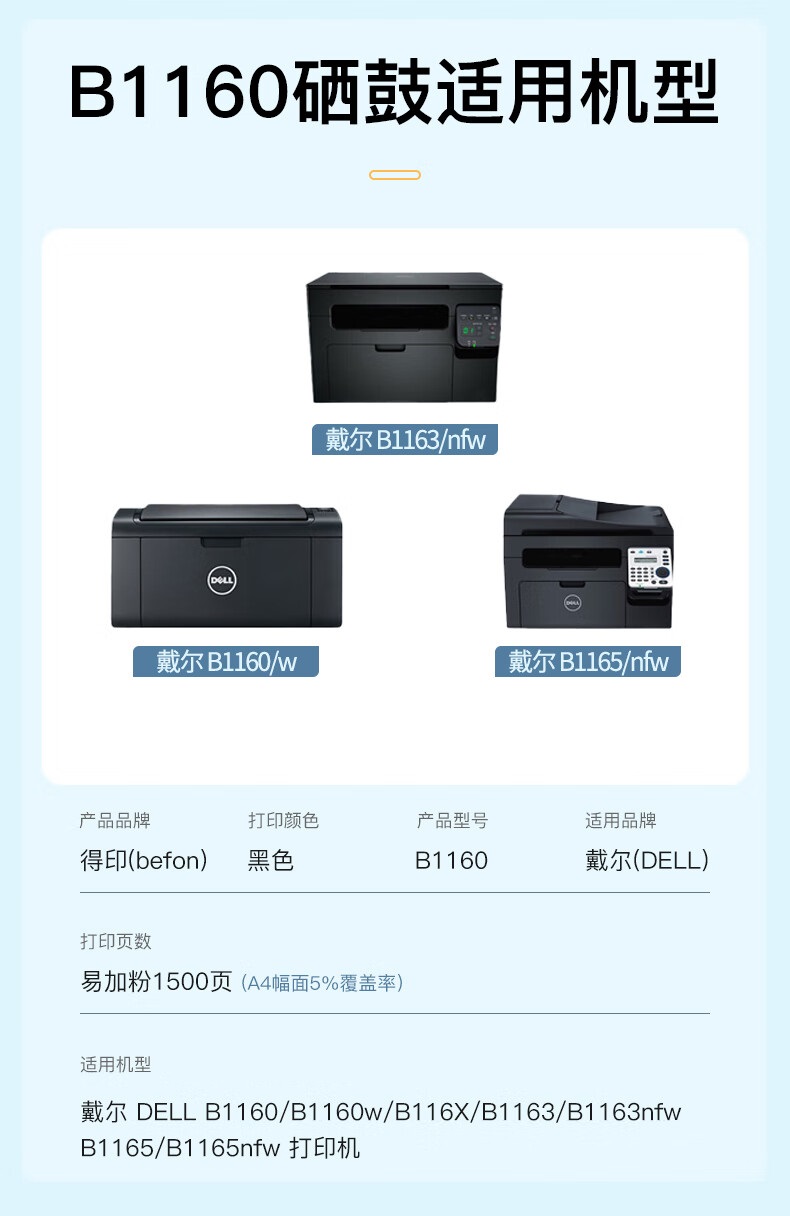 得印 B1160硒鼓 适用戴尔 B1160w B116X B1163 B1165nfw 单位:支 黑色