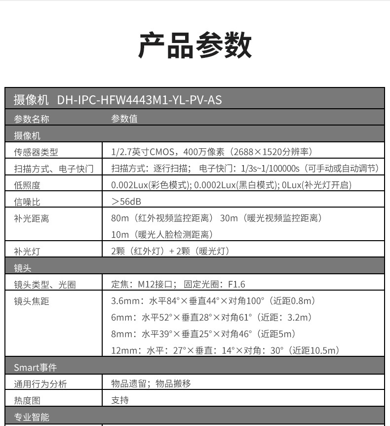 大华Dahua监控摄像头DH-IPC-HFW4443M1-YL-PV-AS 混色