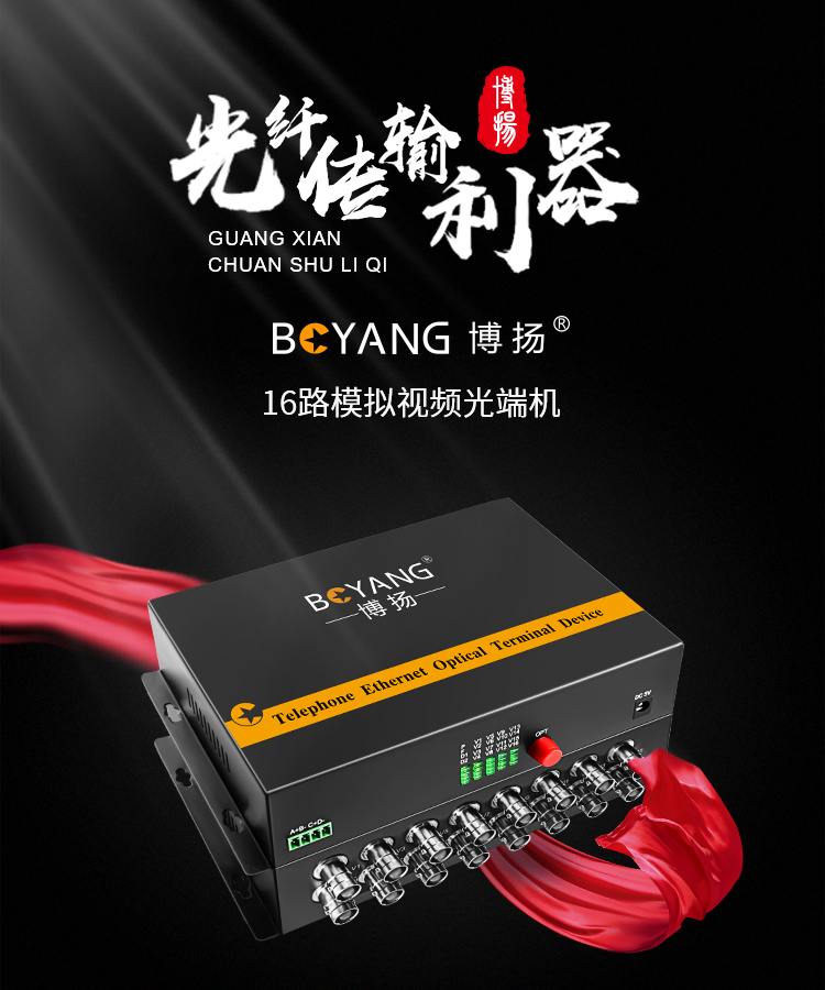 博扬(BOYANG)模拟视频光端机16路视频 光纤收发器延长器 单纤单模FC接口 1对 BY-16V 黑色