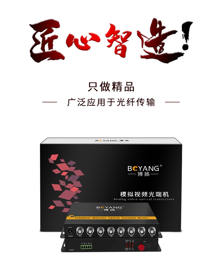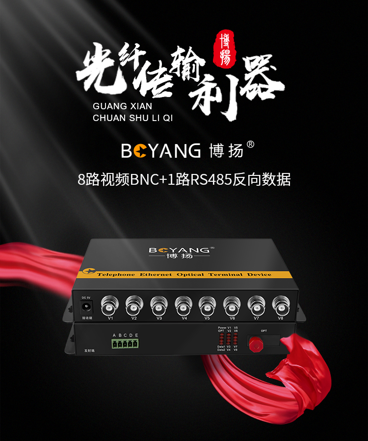 博扬(BOYANG)模拟视频光端机8路视频+1路485反向数据 光纤收发器延长器 单纤单模FC接口 1对 BY-8V1D 黑色