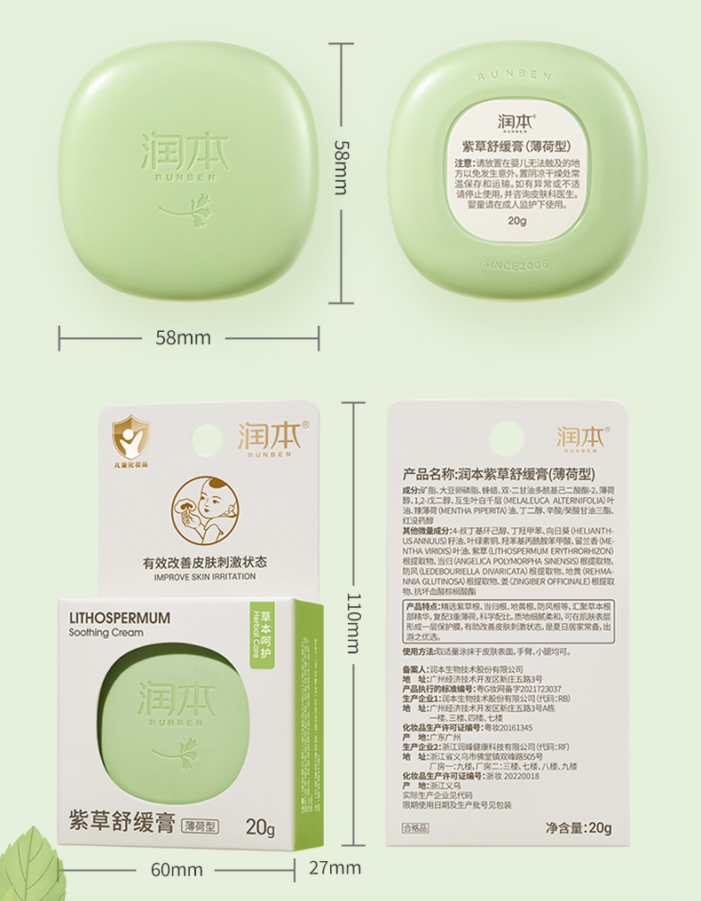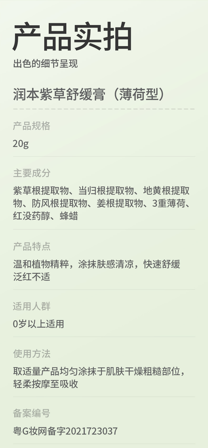 润本紫草修护膏(薄荷型)20g(单位:盒) 军绿色