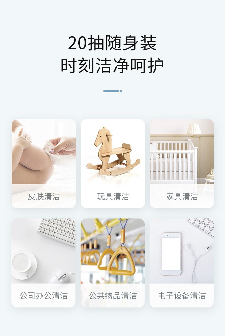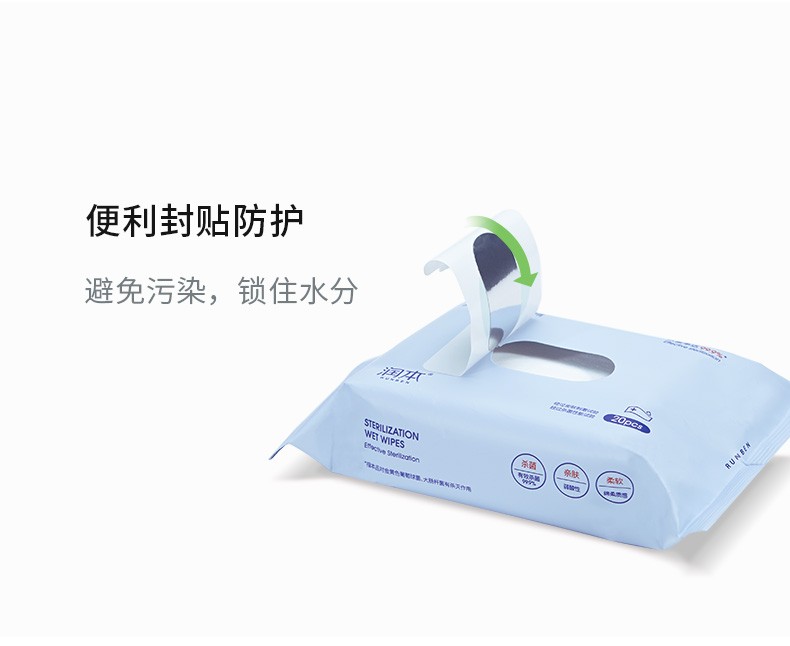 润本便携小包卫生湿巾(含酒精,含苯扎氯铵成分) 20片装*10包 天蓝色