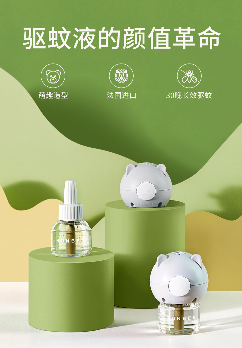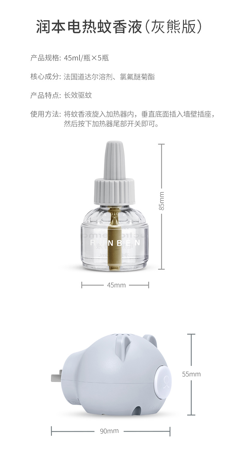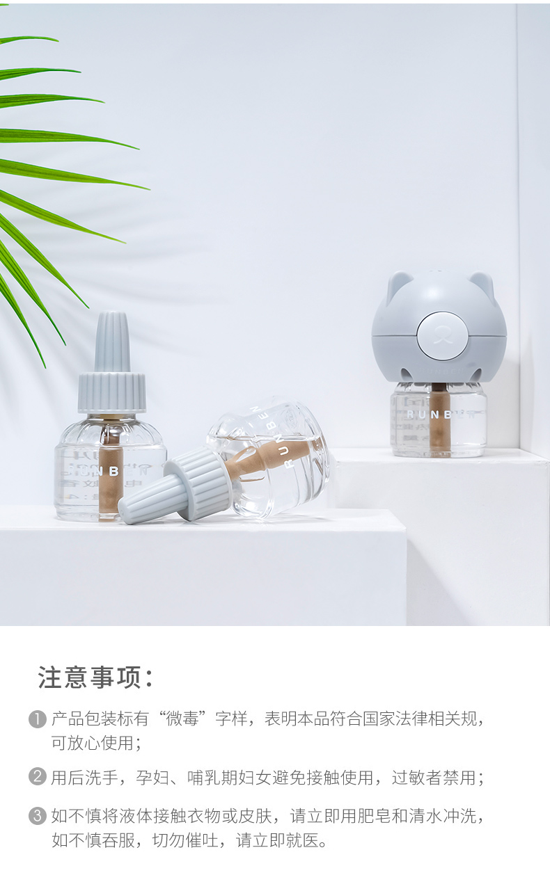润本电热蚊香液(无香型)粉绿版5件套45ml*5 白色