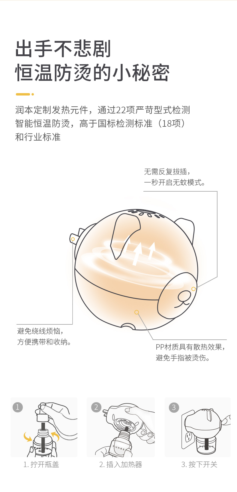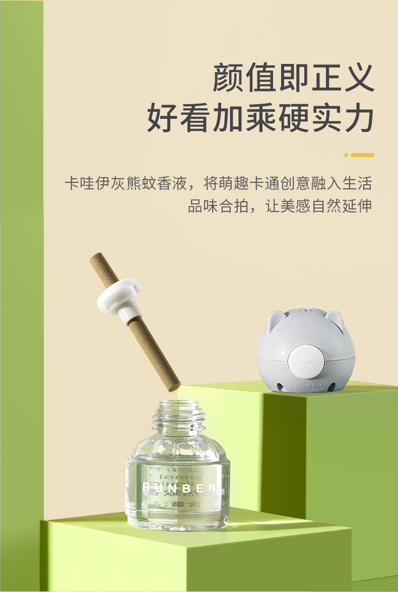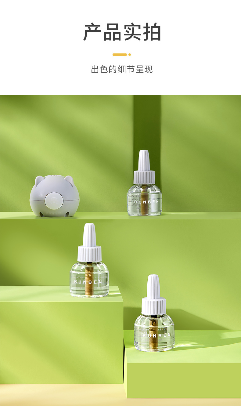 润本电热蚊香液(无香型)粉绿版5件套45ml*5 白色