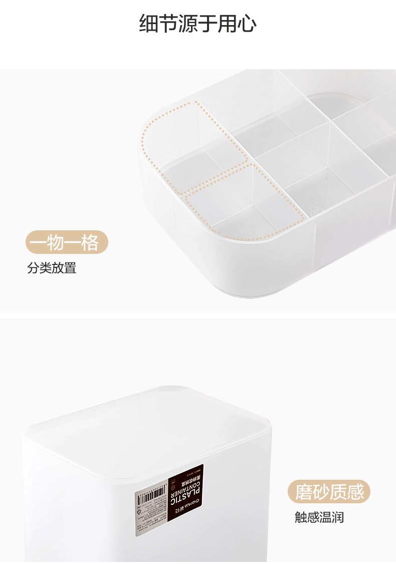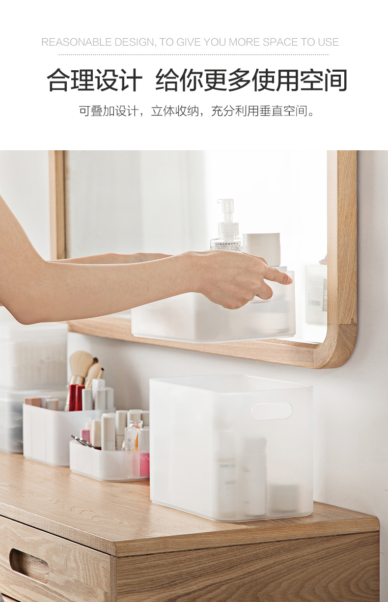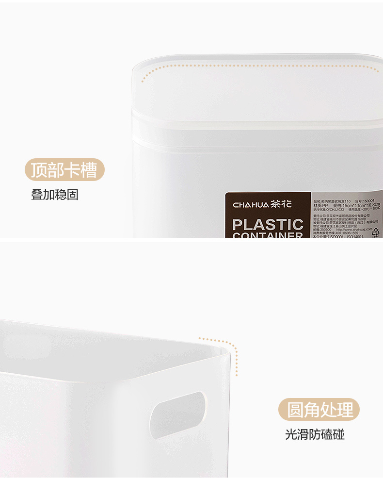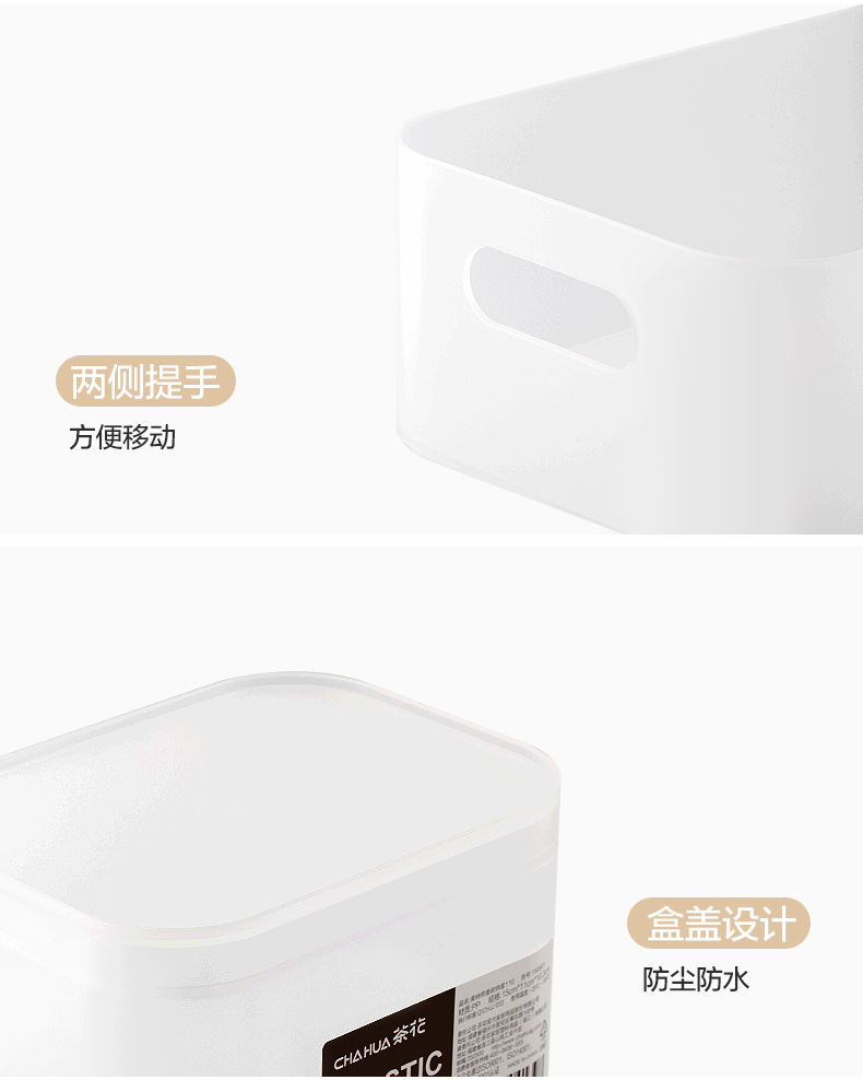 茶花美纳带盖收纳盒22*15*8.6cm 半透明磨砂