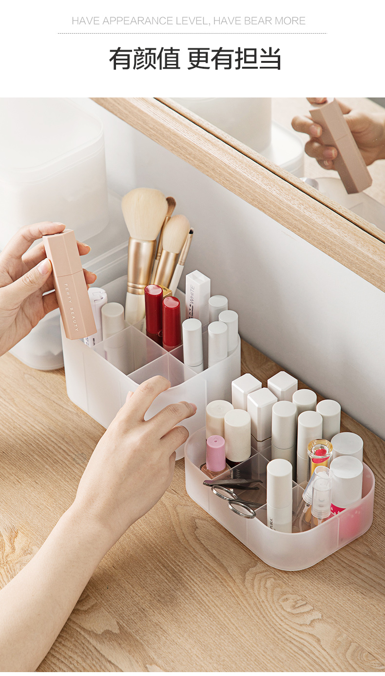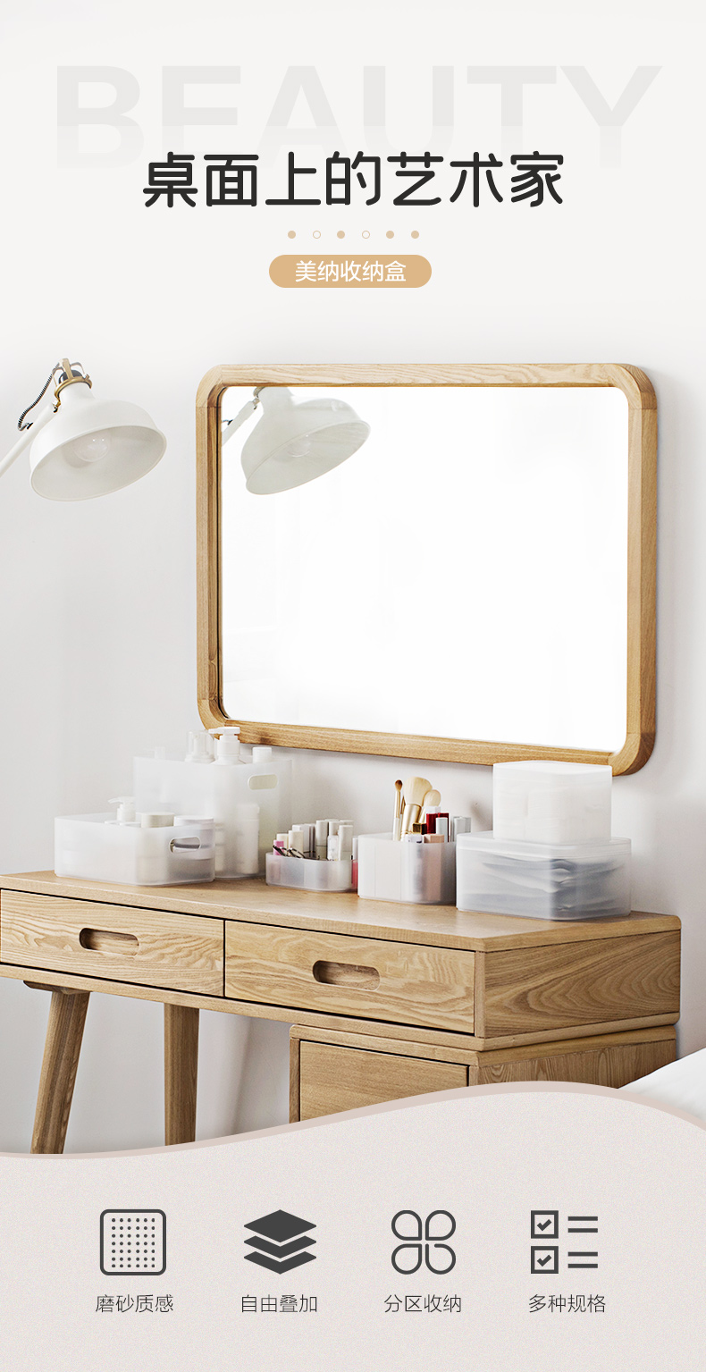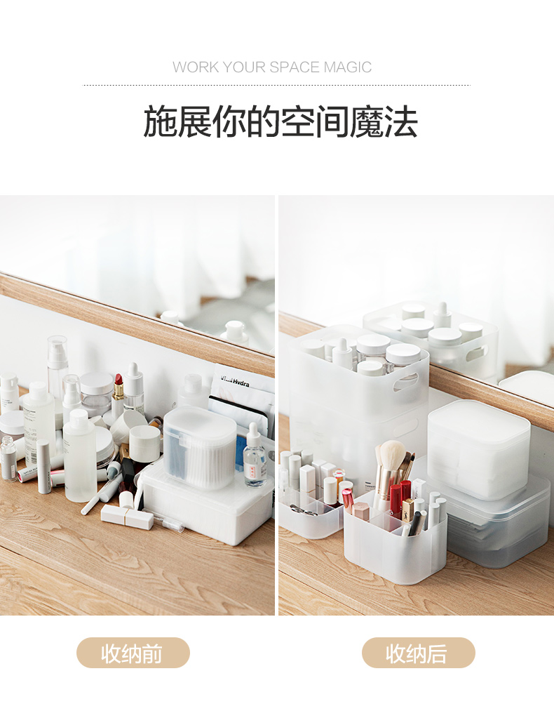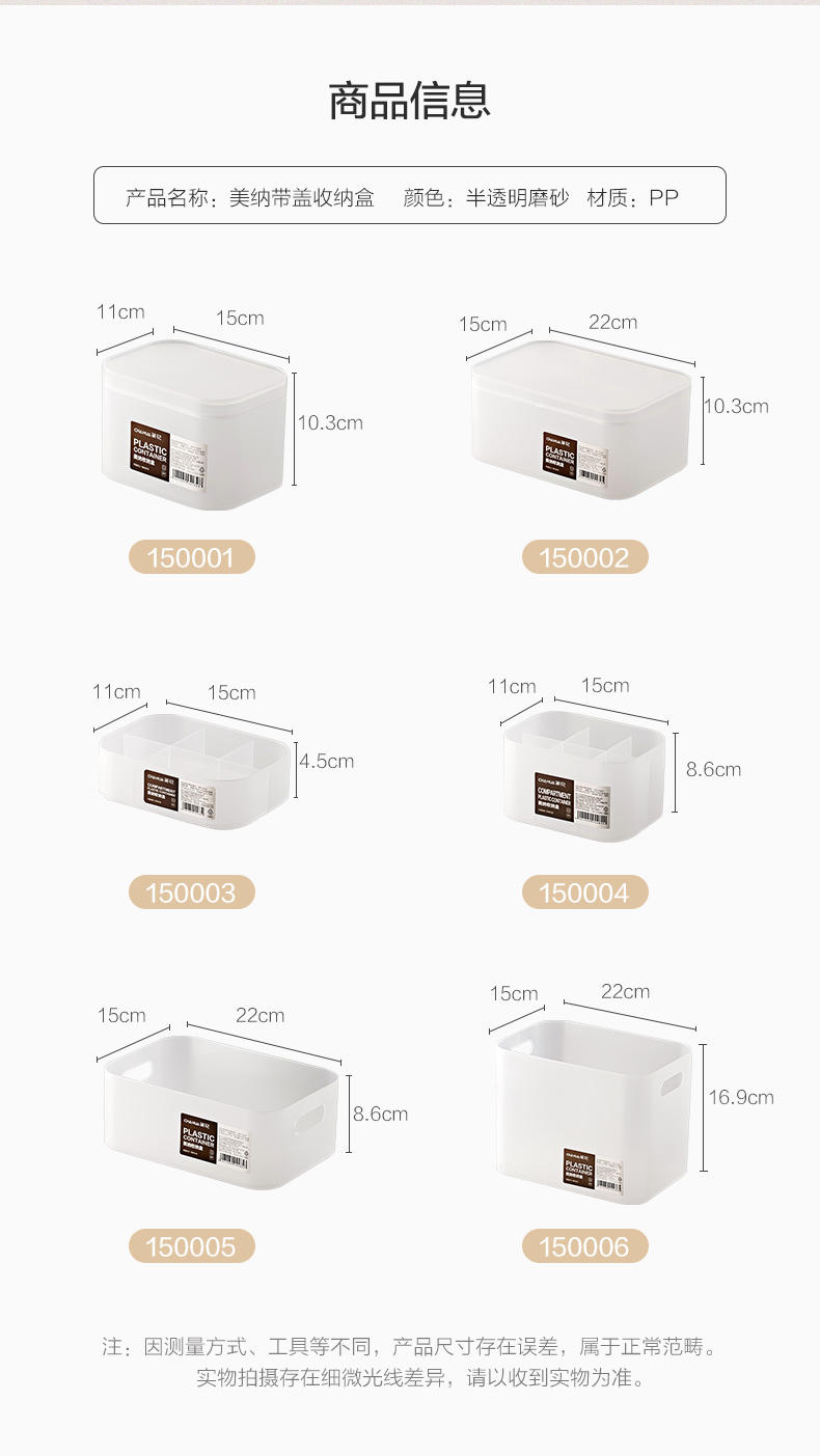 茶花美纳带盖收纳盒22*15*8.6cm 半透明磨砂