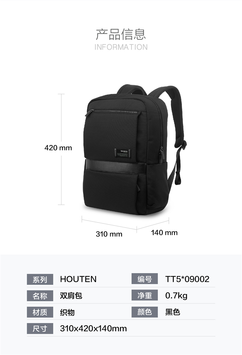 Samsonite/新秀丽双肩包休闲商务电脑包 大容量背包男包TT5*09002(单位:个) 黑色