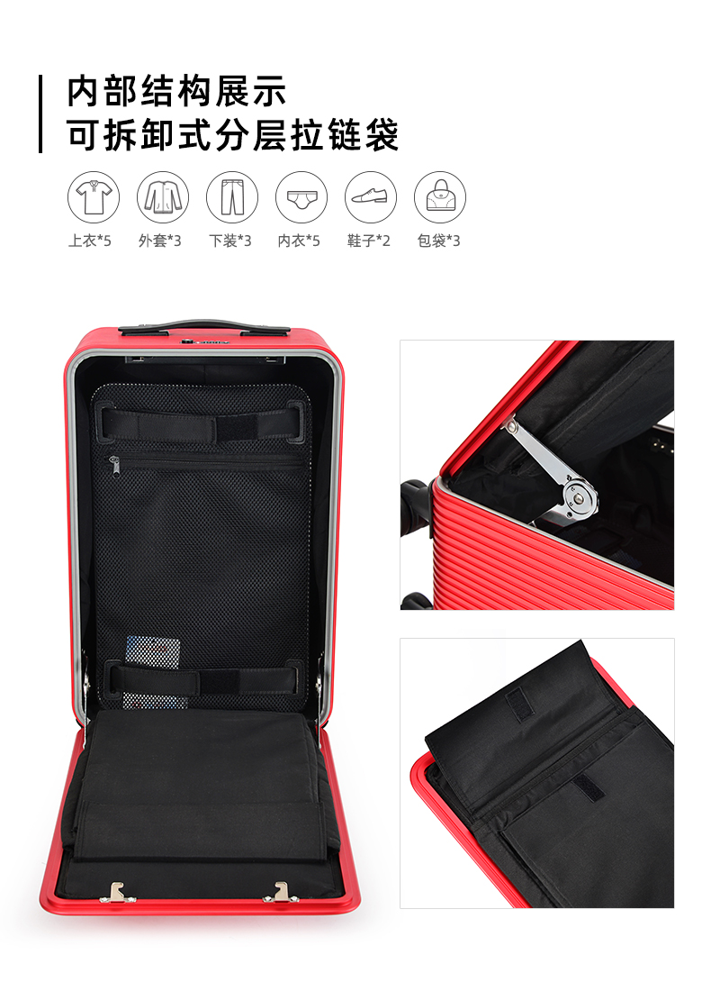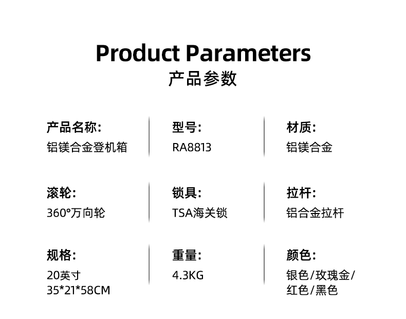 瑞森纳 RESENA 铝镁合金前翻盖拉杆箱20寸 RH8813 粉色 20寸