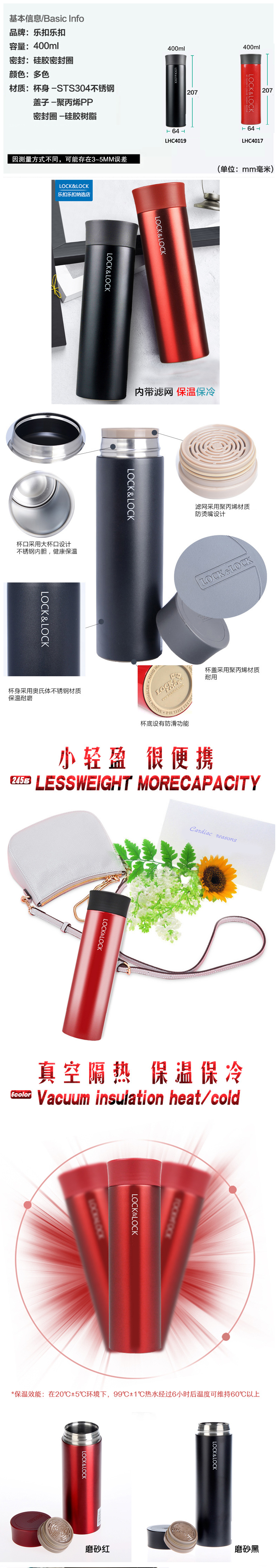 乐扣乐扣绚丽马克杯大号 400ml LHC4019RR/BK 红色