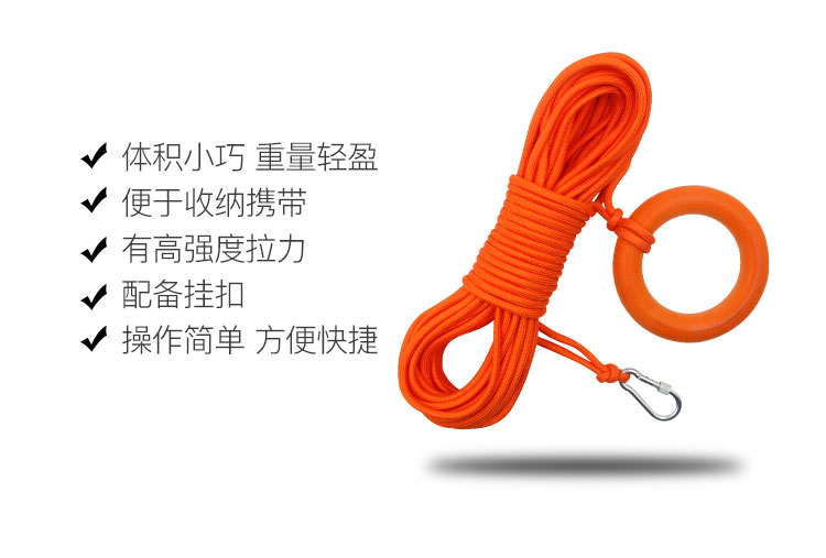 谋福 204 救生绳游泳绳子救援安全绳漂浮水上救生圈浮索逃生绳 条 灰橙色