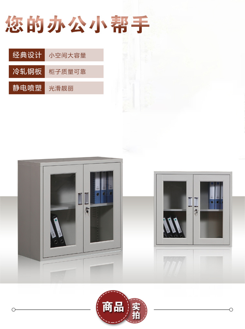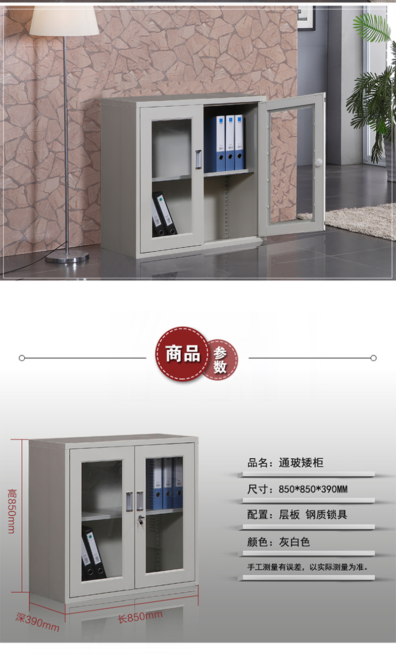 企诺 文件柜通玻对开矮柜WJG-15 灰白色