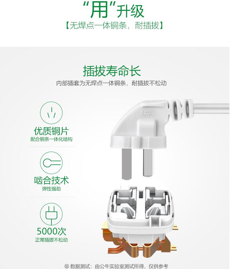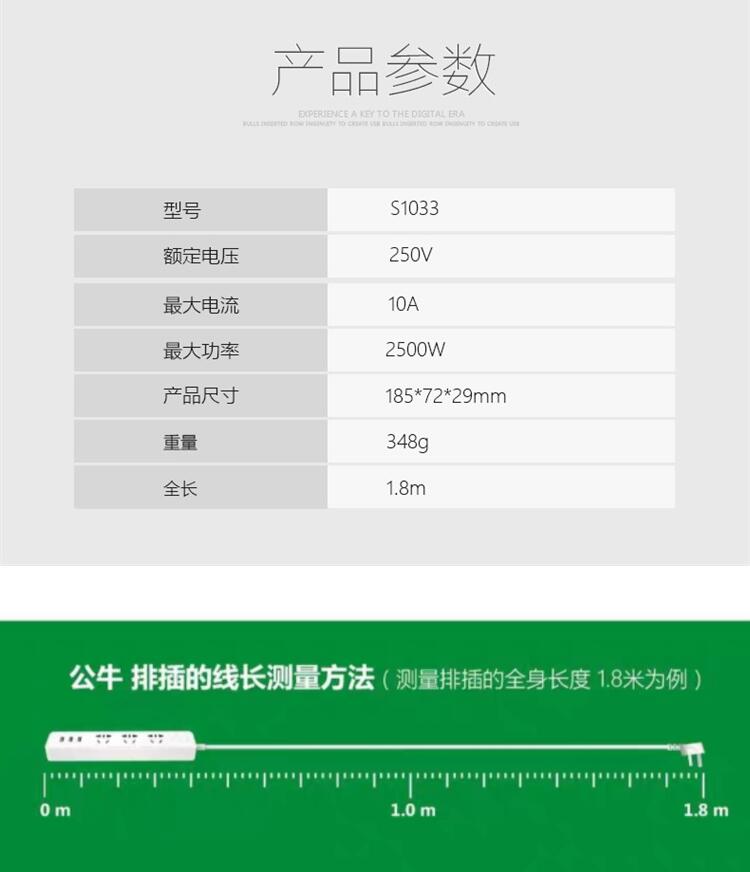 公牛(BULL)S1033 新国标插座 1.8米 白色
