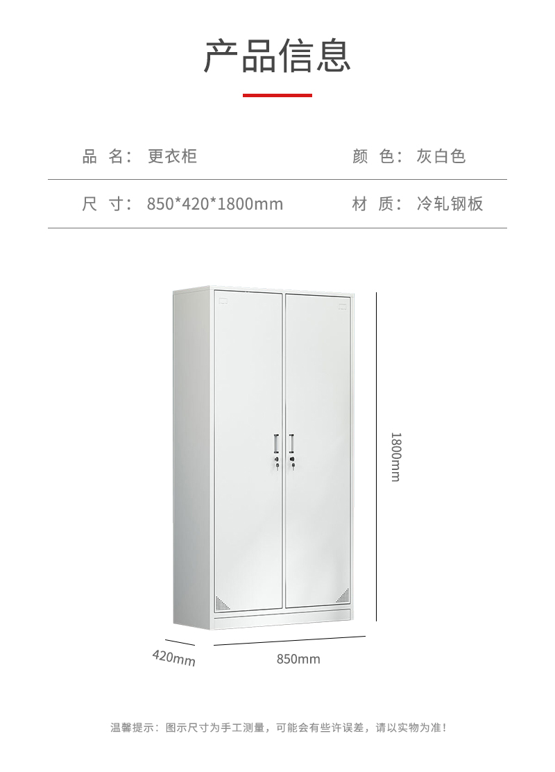 企诺 两门更衣柜铁皮柜GYG-1 灰白色