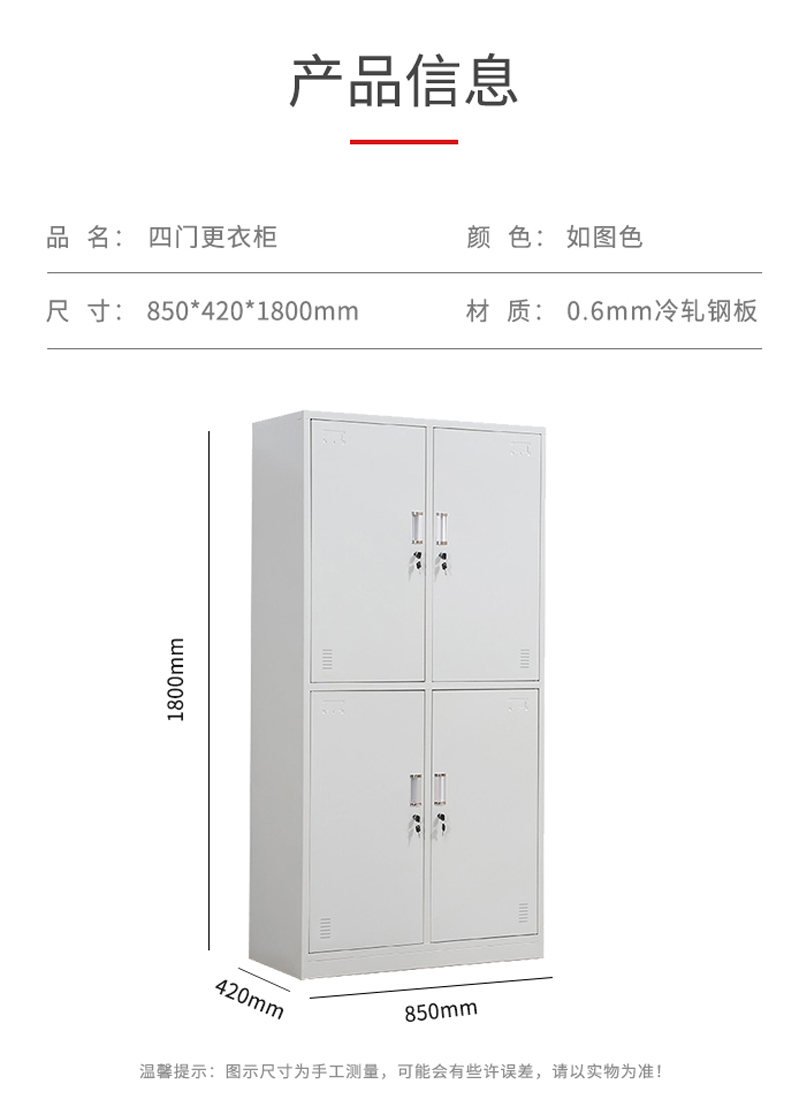 企诺 四门更衣柜常规铁皮柜储物柜GYG-3 灰白色