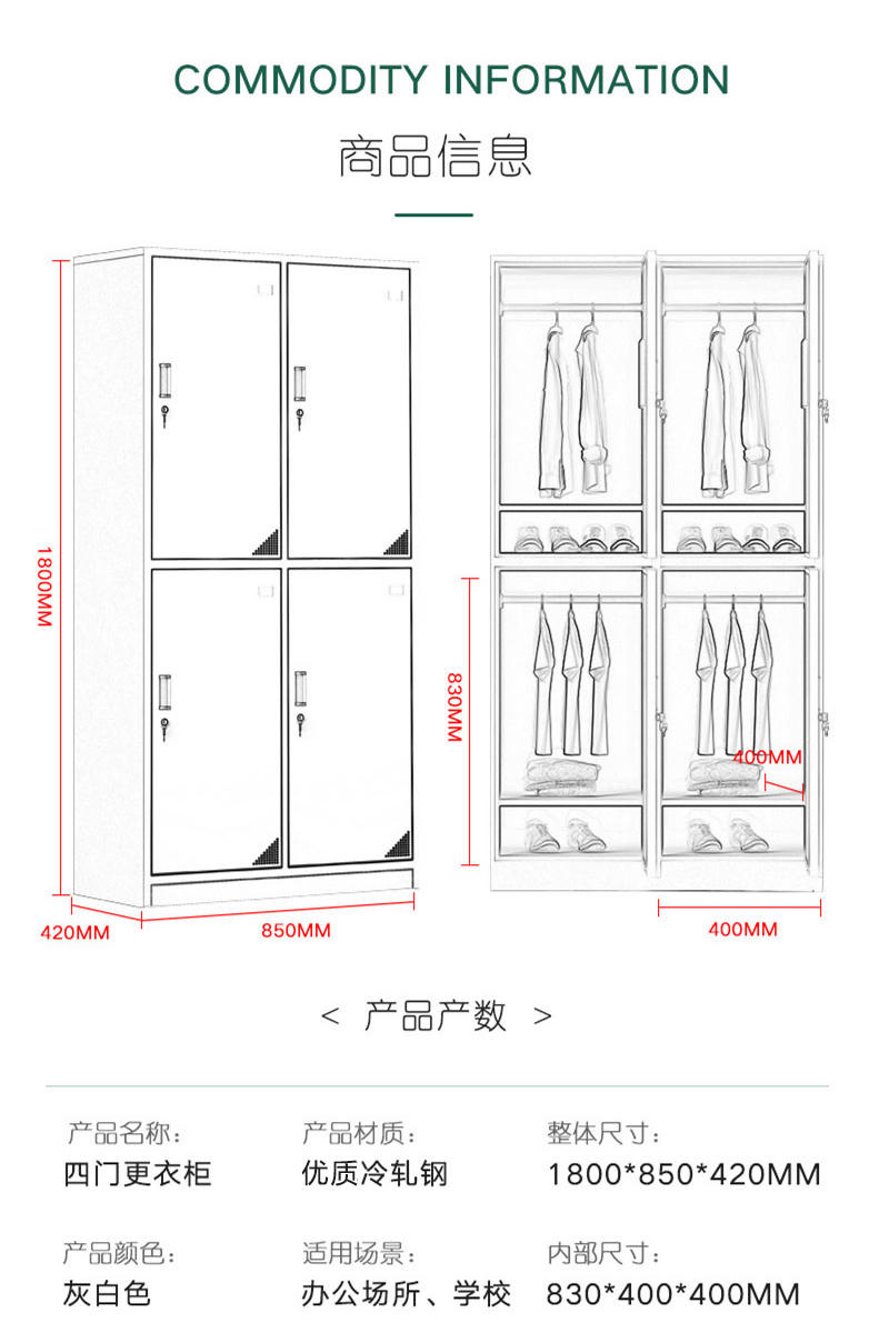 企诺 文件柜四门更衣柜GYG-4 灰白色