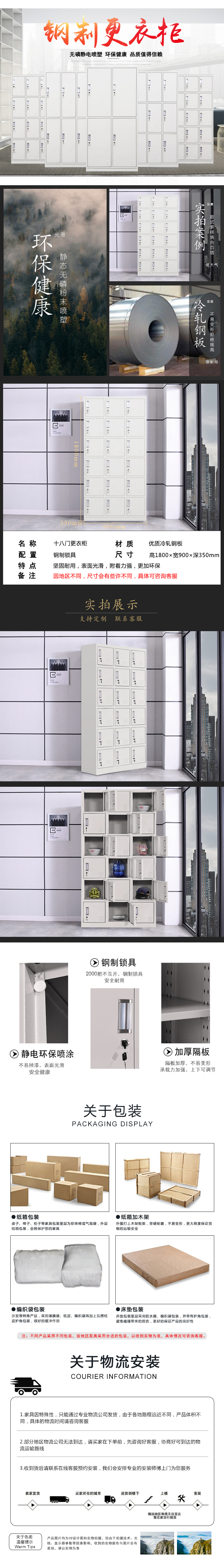 企诺 文件柜十八门更衣柜GYG-10 灰白色