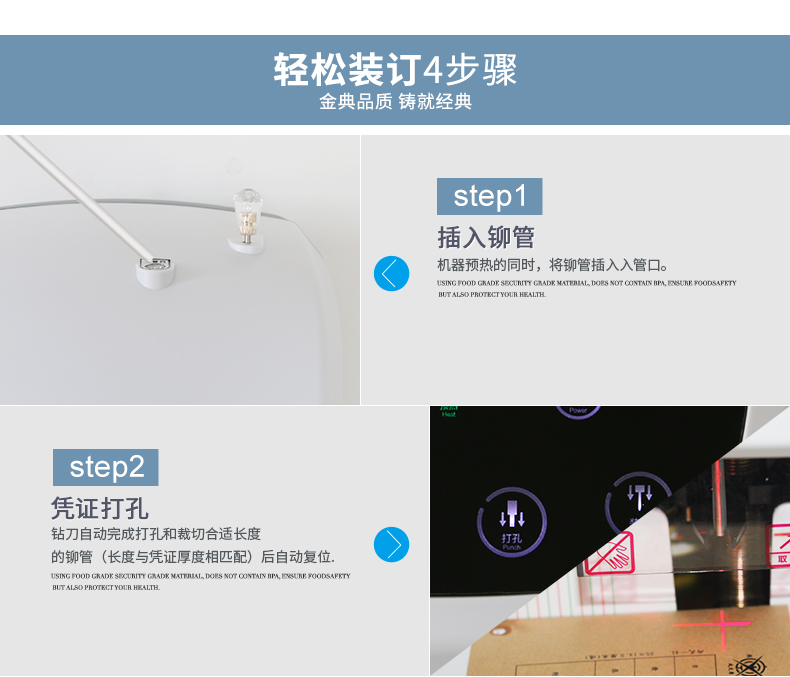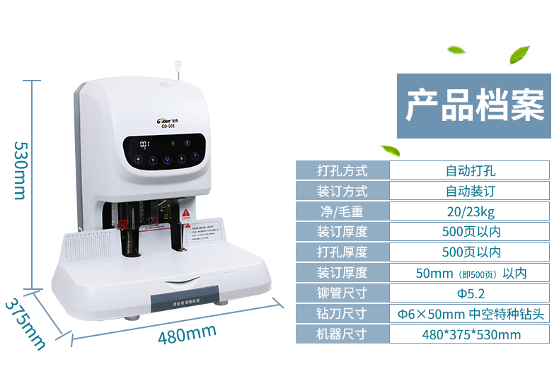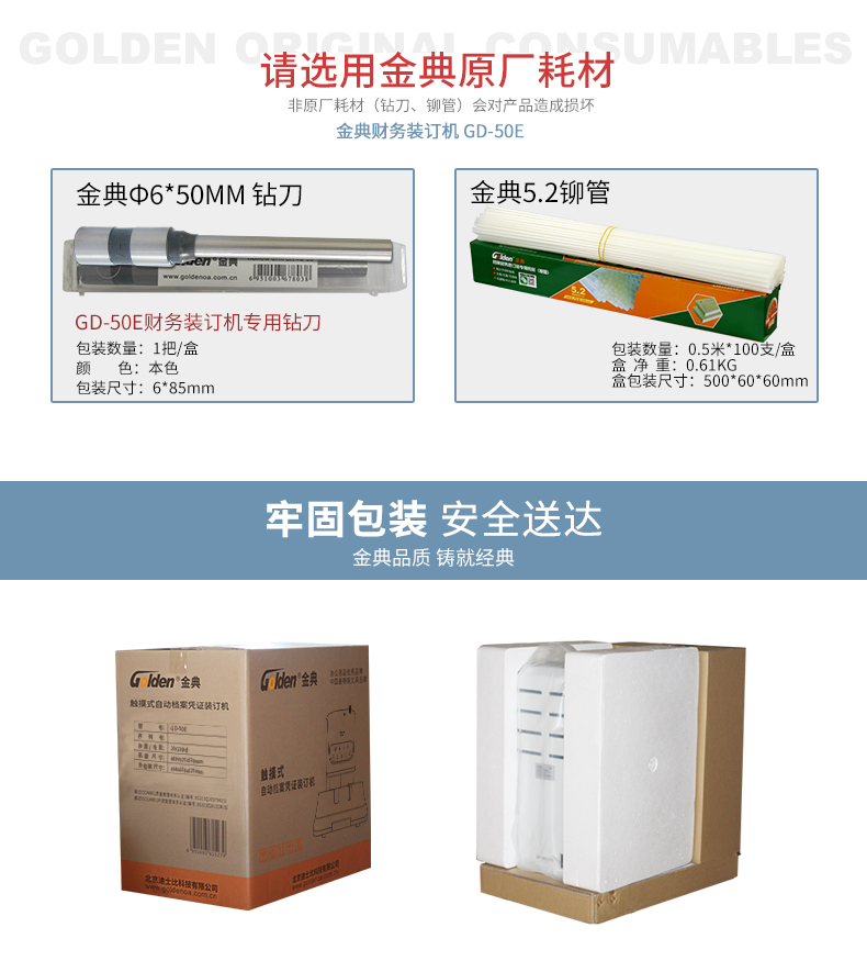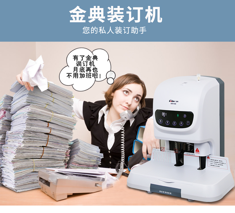金典 GOLDEN GD-50E装订机液晶 自动财务装订机凭证装订机 白色