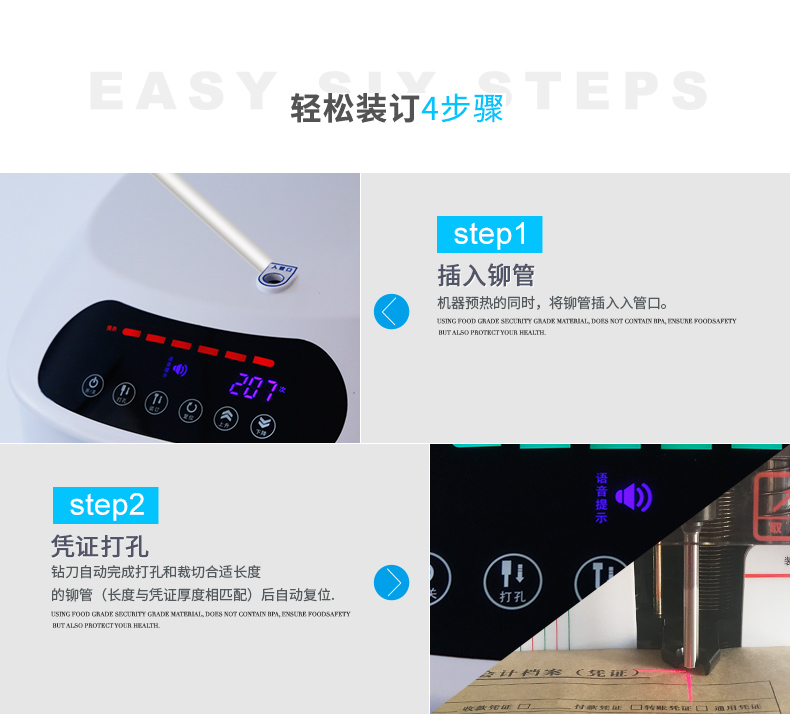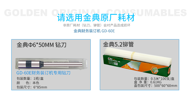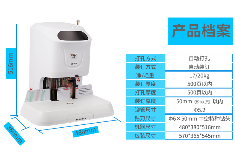 金典(Golden)GD-60E装订机财务凭证装订机 自动激光定位打孔 液晶显示语音提示 白色
