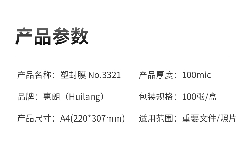 惠朗 (huilang)100mic A4优质专用护卡膜/塑封膜220*307mm 100张/包 No.3321(起订量:2包起) 白色